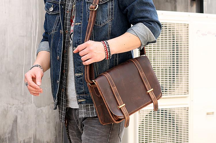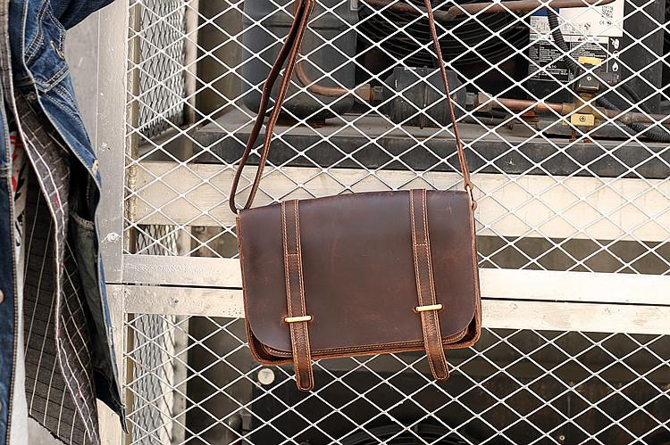 Style: Dark Gray Leather Mens Casual 10" Courier Bags Messenger Bag Dark Brown Postman Bag For Men