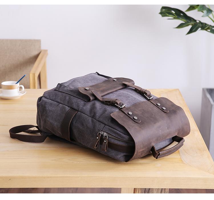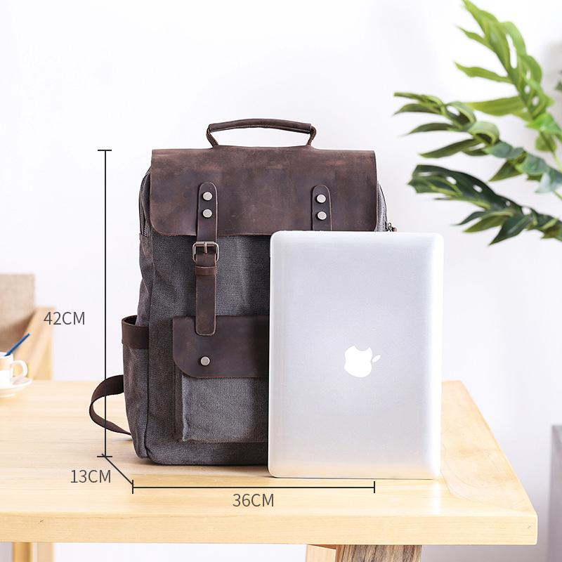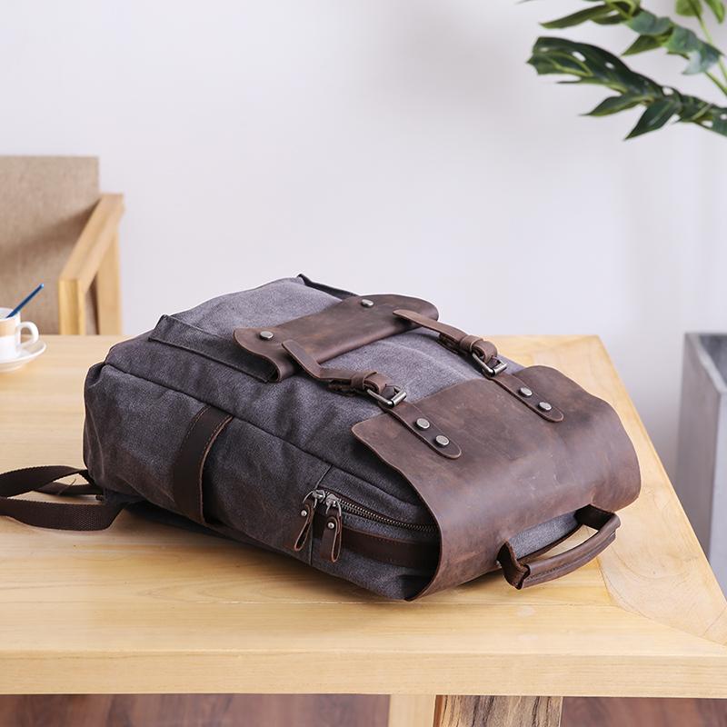 Style: Dark Gray Waxed Canvas Mens Large 15'' Laptop Backpack College Backpack Hiking Backpack for Men