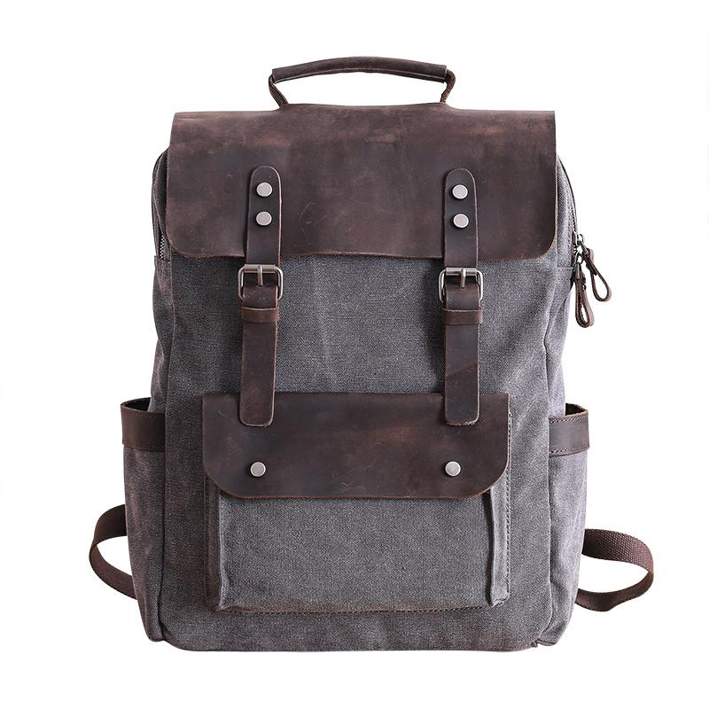 Design: Dark Gray Waxed Canvas Mens Large 15'' Laptop Backpack College Backpack Hiking Backpack for Men