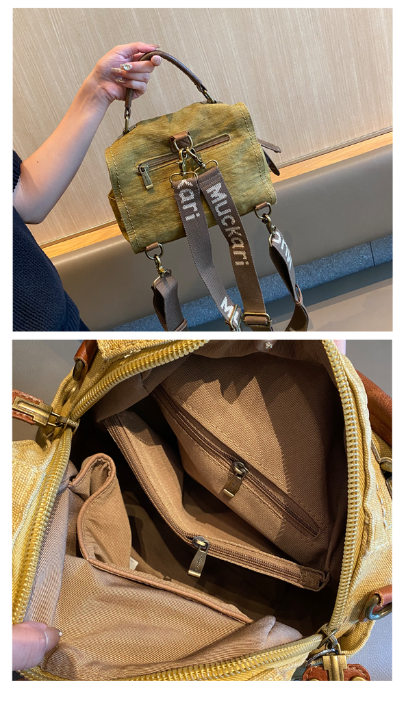 Design: Canvas Convertible Crossbody Bag Handbag With outside Pocket Green Canvas Convertible Backpack Shoulder Bag