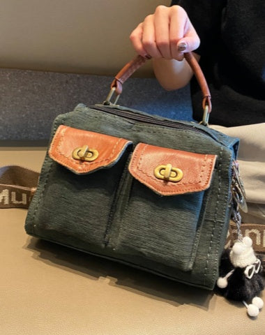 Style: Dark Green Canvas Shoulder Bag Women Canvas Handbag Crossbody Bag With outside Pockets