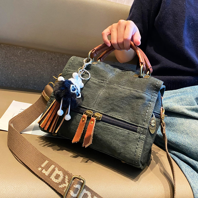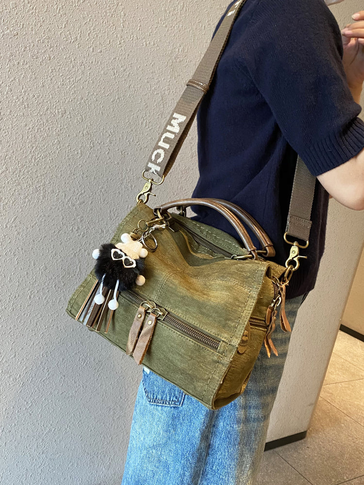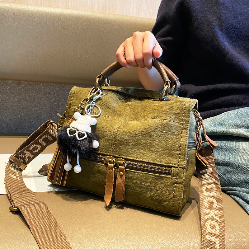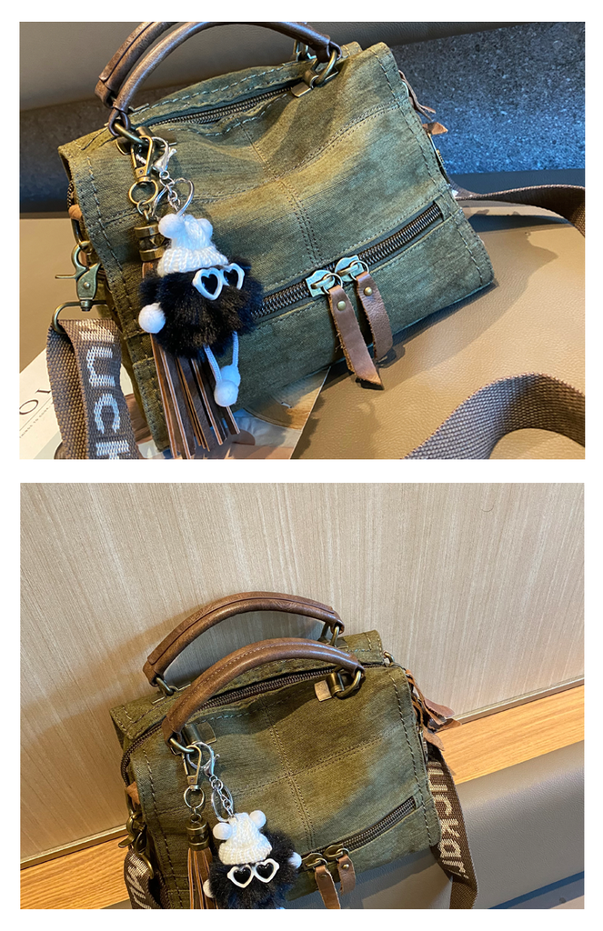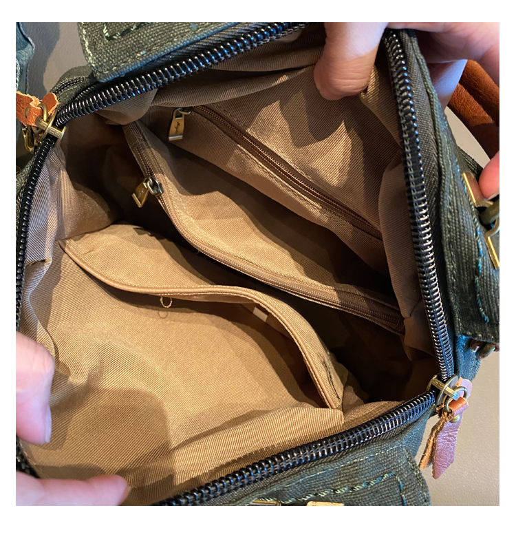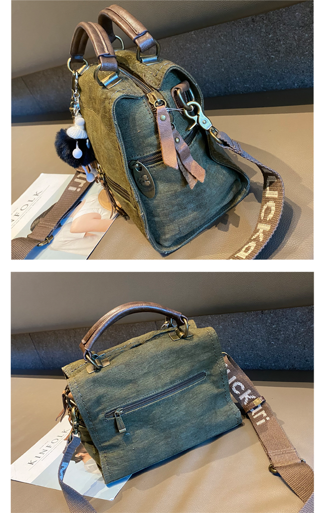 Style: Green Convertible Canvas Handbag Crossbody Bag With Outside Pockets Canvas Convertible Backpack Shoulder Bag