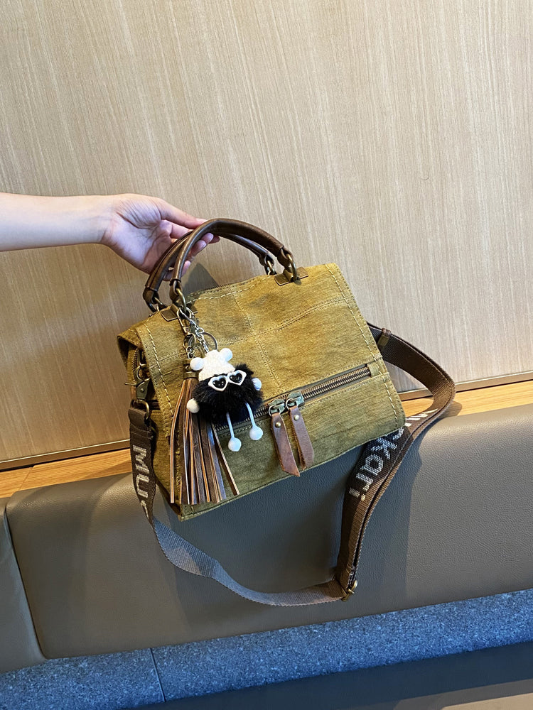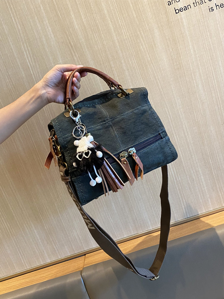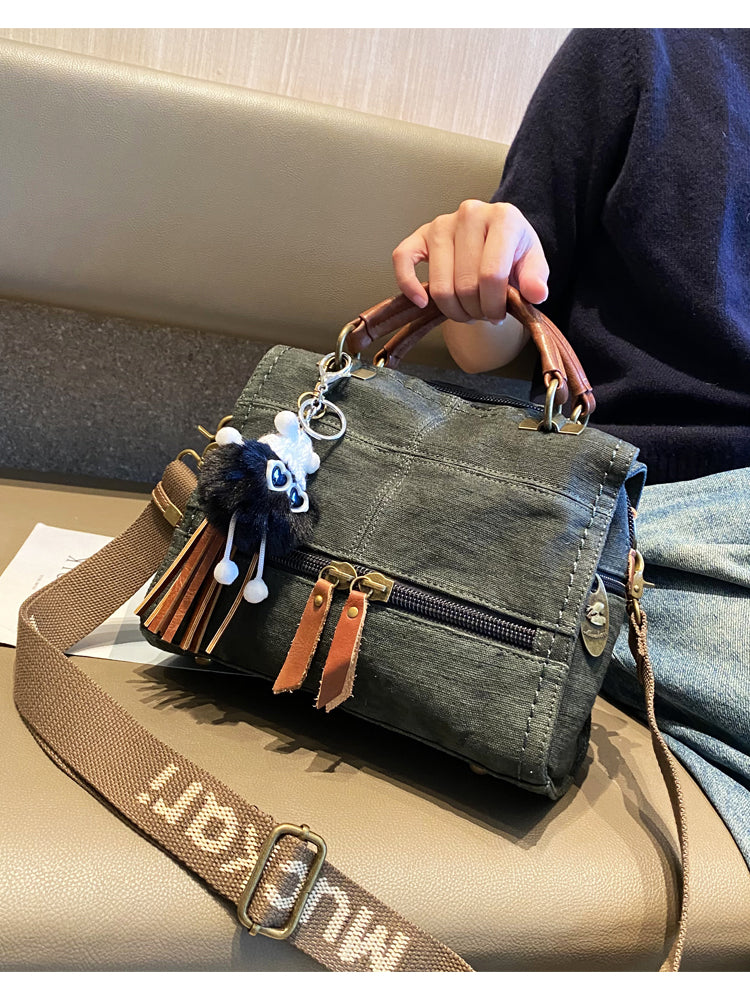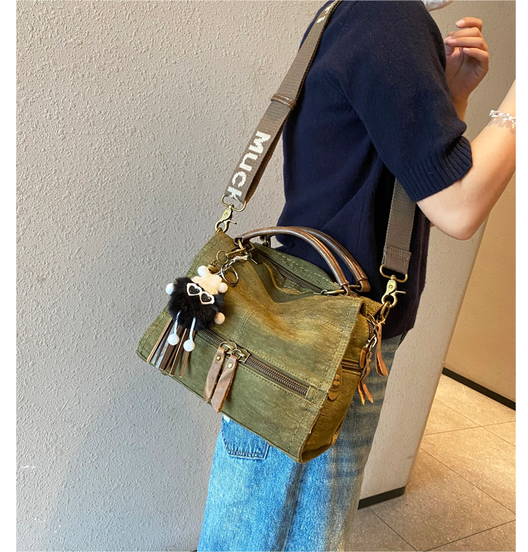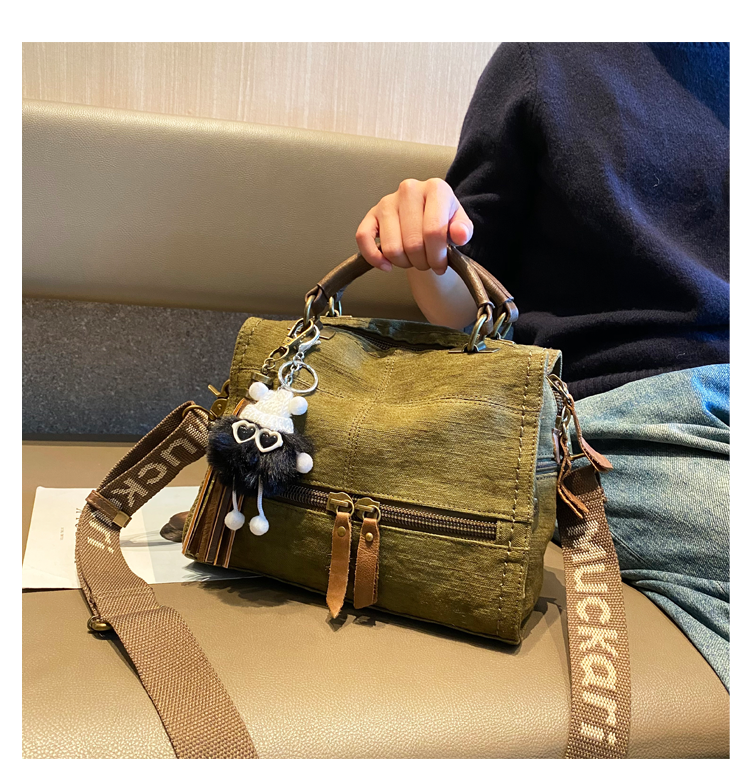 Style: Green Convertible Canvas Handbag Crossbody Bag With Outside Pockets Canvas Convertible Backpack Shoulder Bag