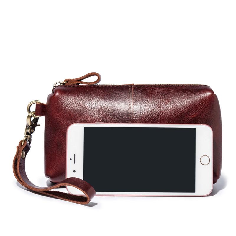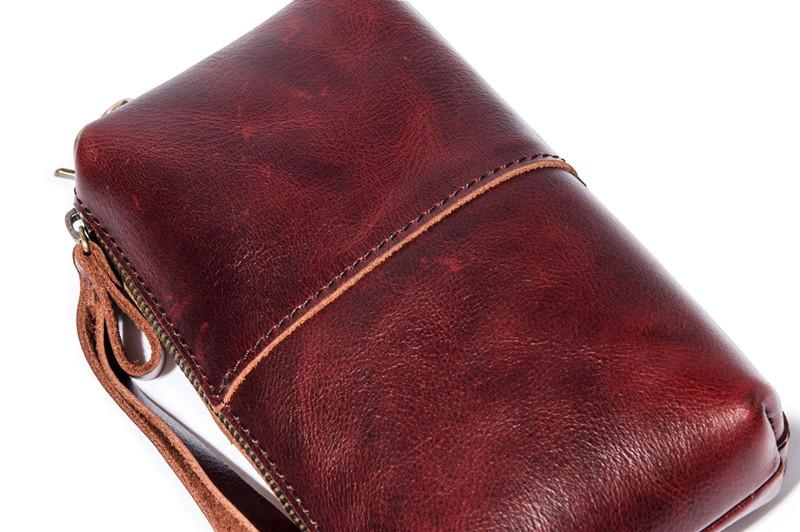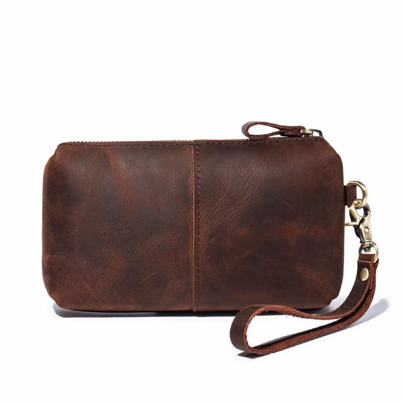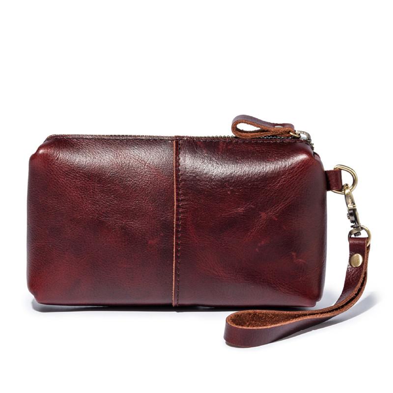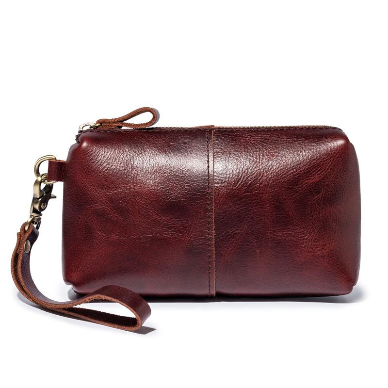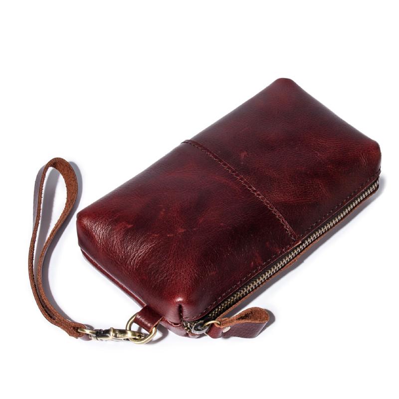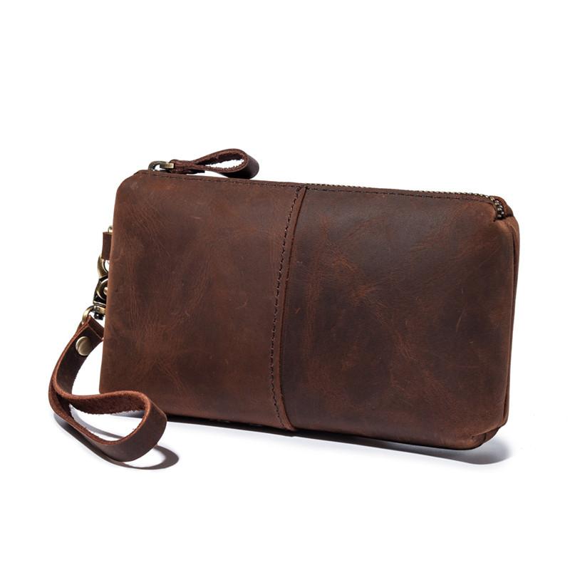 Design: Darkr Brown MENS LEATHER Red Brown SLIM ZIPPER CLUTCH WRISTLET PURSE BAG CLUTCH BAG FOR MEN