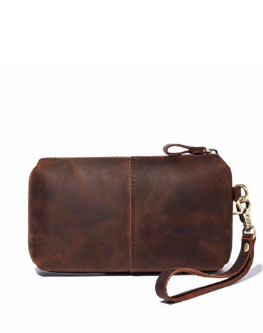 Style: Darkr Brown MENS LEATHER Red Brown SLIM ZIPPER CLUTCH WRISTLET PURSE BAG CLUTCH BAG FOR MEN
