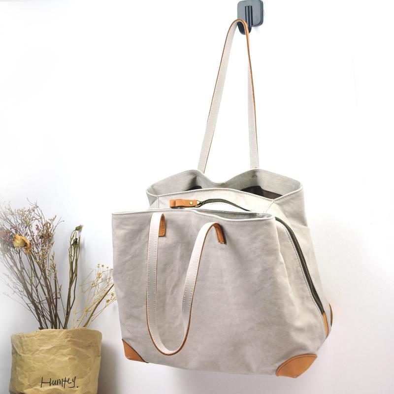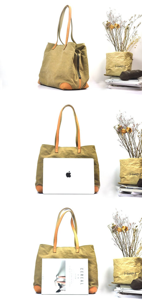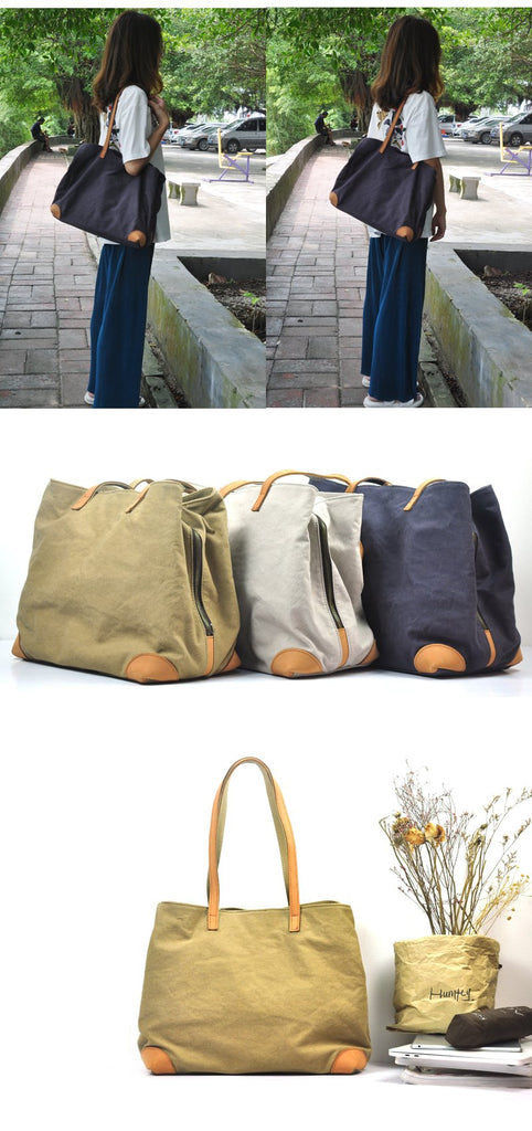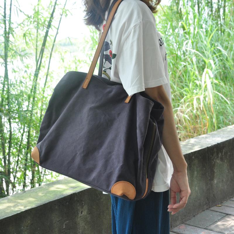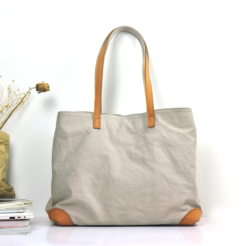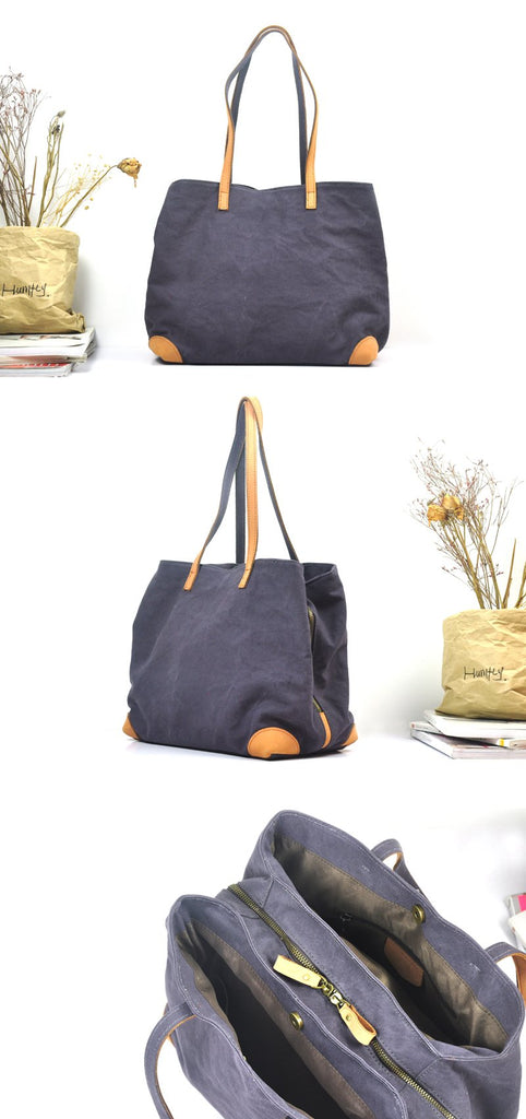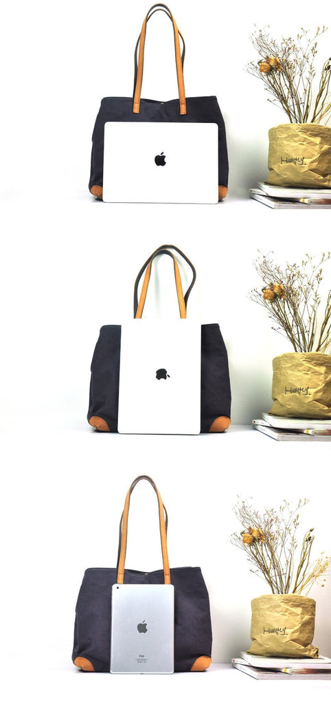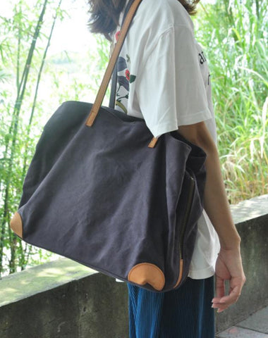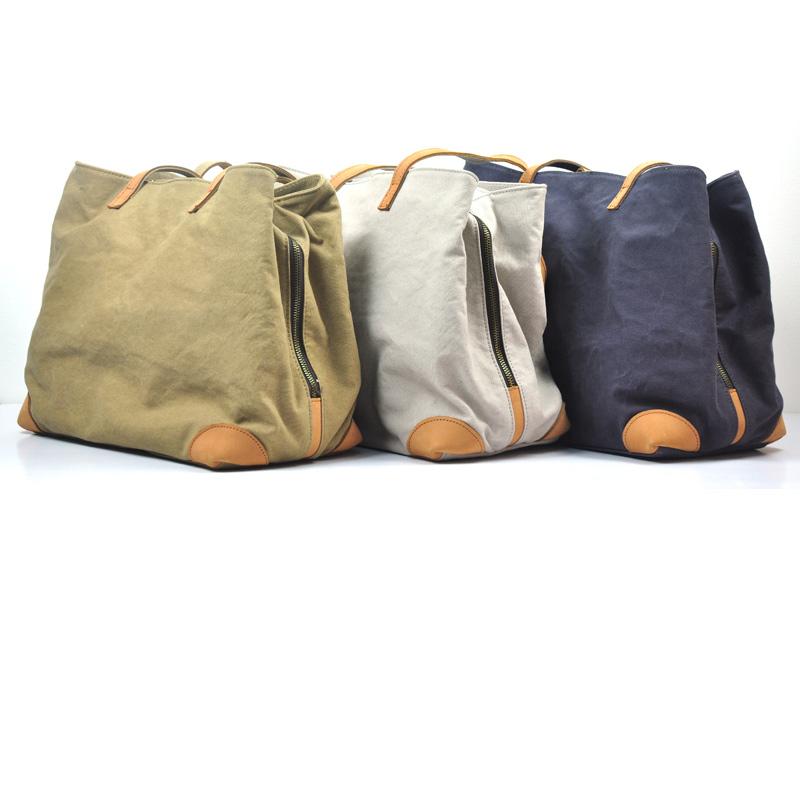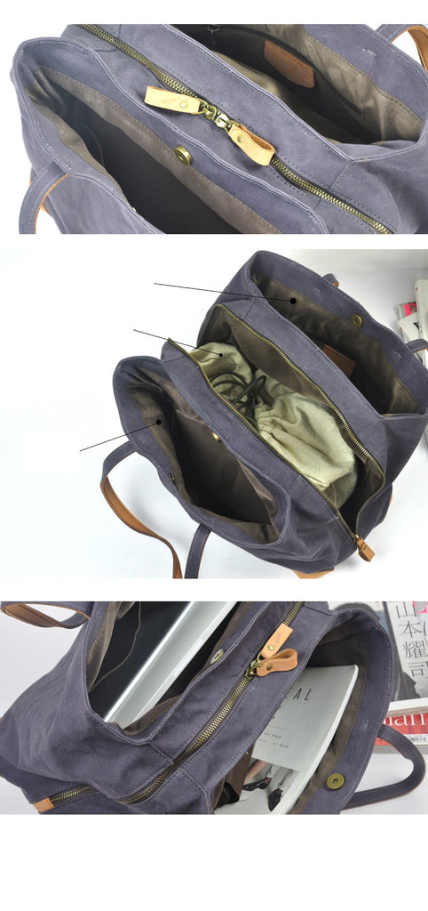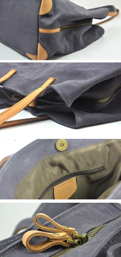 Gray Canvas Leather Mens Denim Bag Tote Bag Messenger Bag Camel Travel Bag For Men and Women