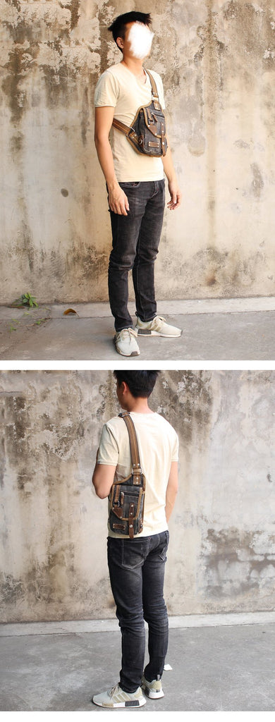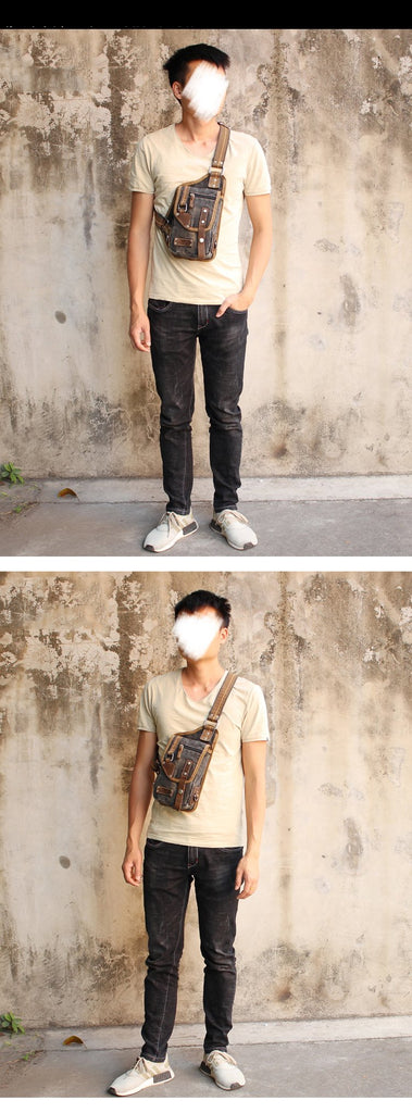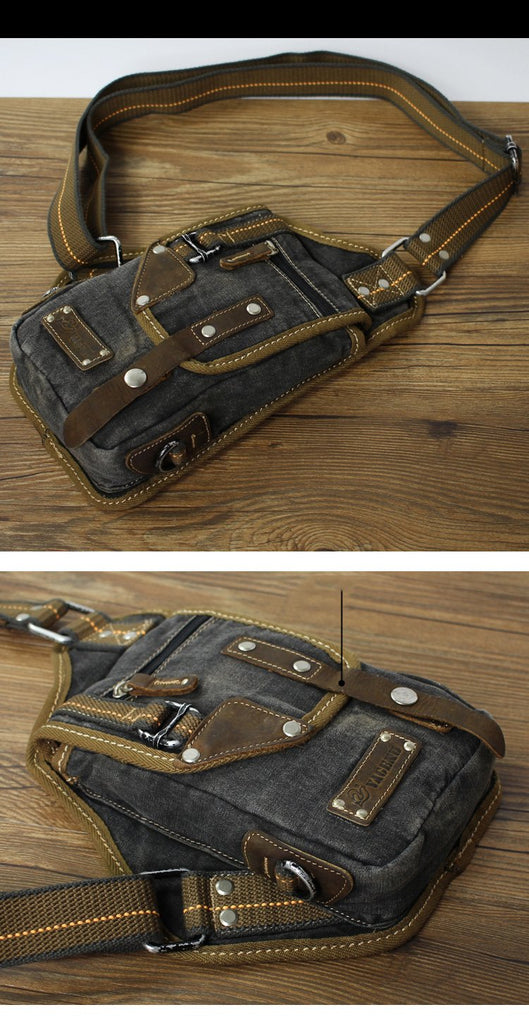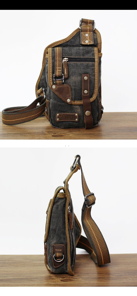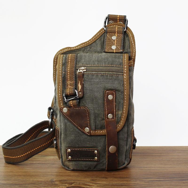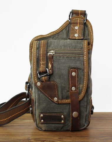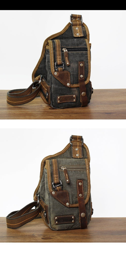 Style: Canvas Black Mens Sling Bag Green Chest Bag One Shoulder Backpack For Men
