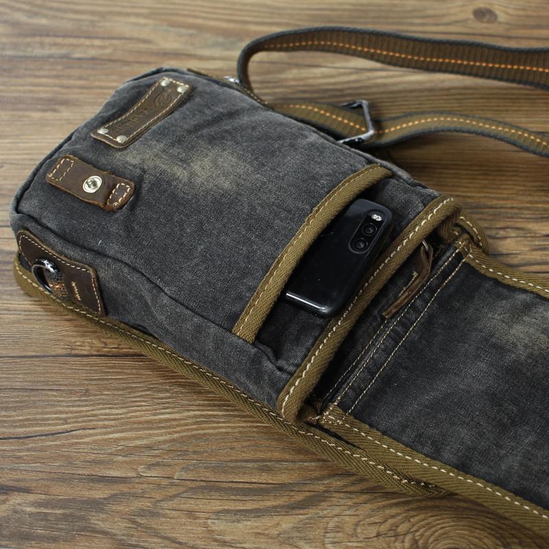 Design: Canvas Black Mens Sling Bag Green Chest Bag One Shoulder Backpack For Men