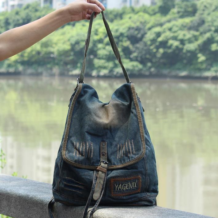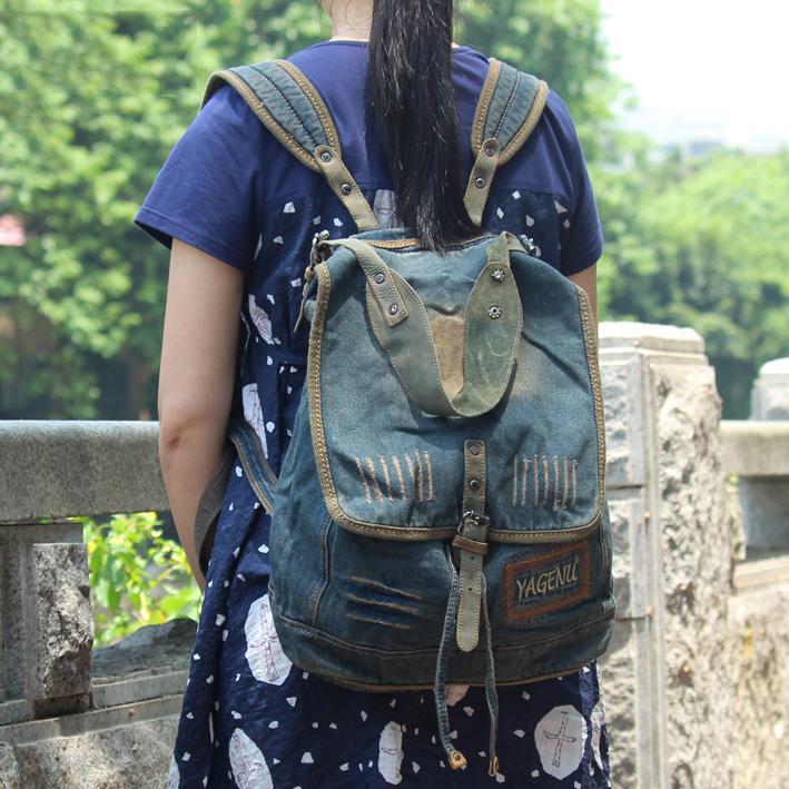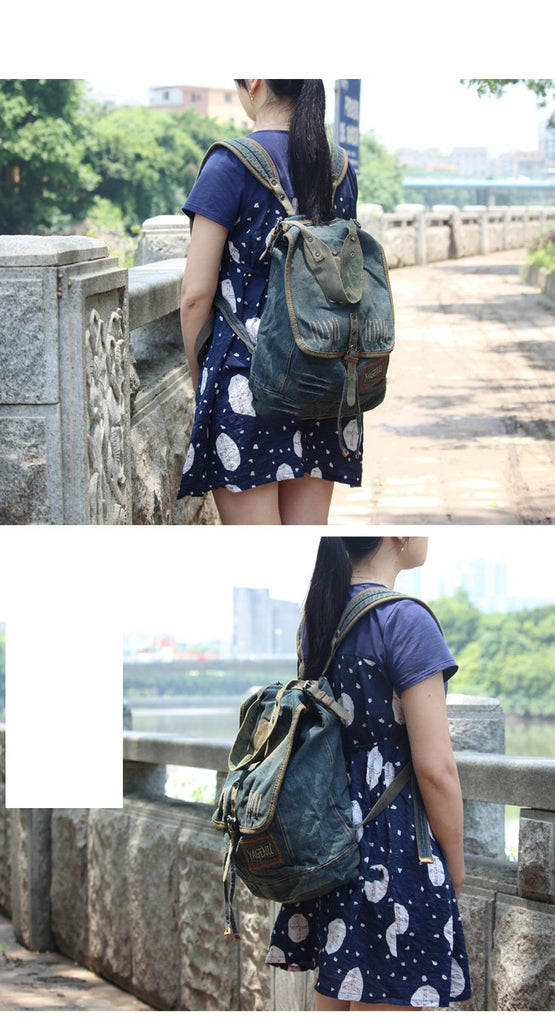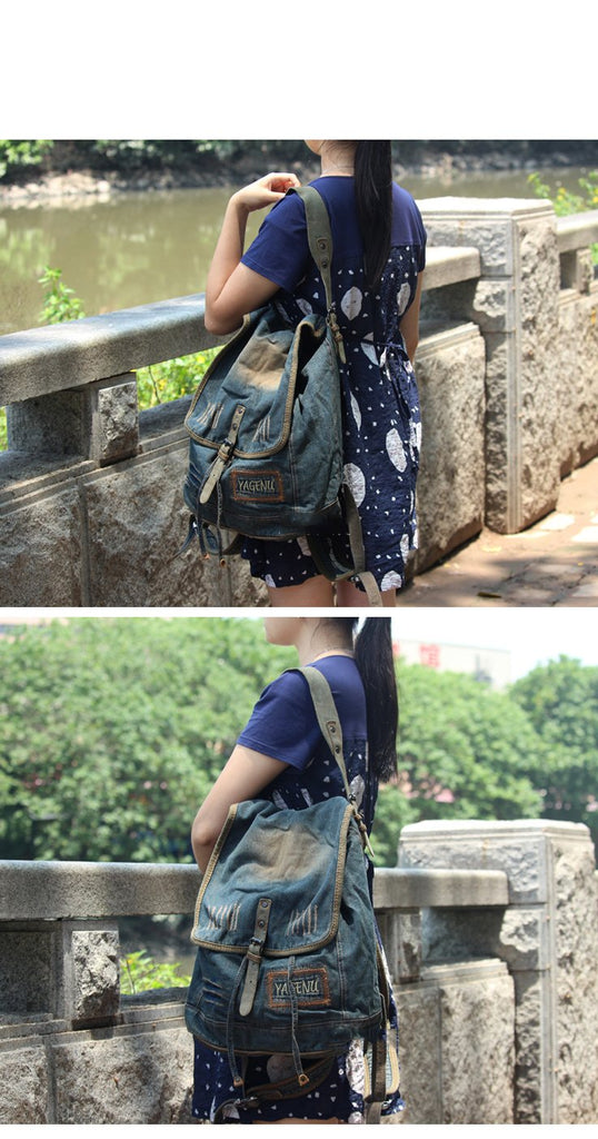 Style: Denim Blue Mens 10 inches Backpack School Backpack Blue Jean Travel Backpacks For Men