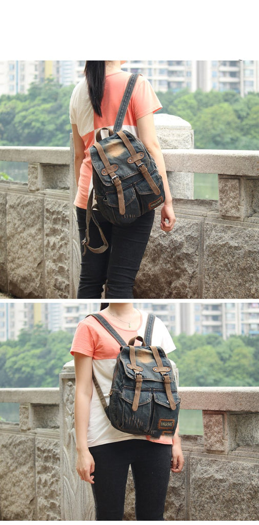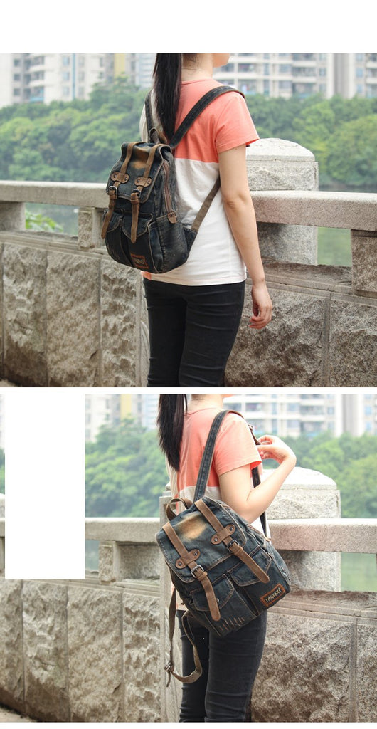 Design: Denim Blue Mens 12 inches Backpack School Backpack Blue Jean Travel Backpacks For Men