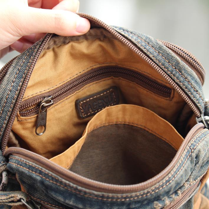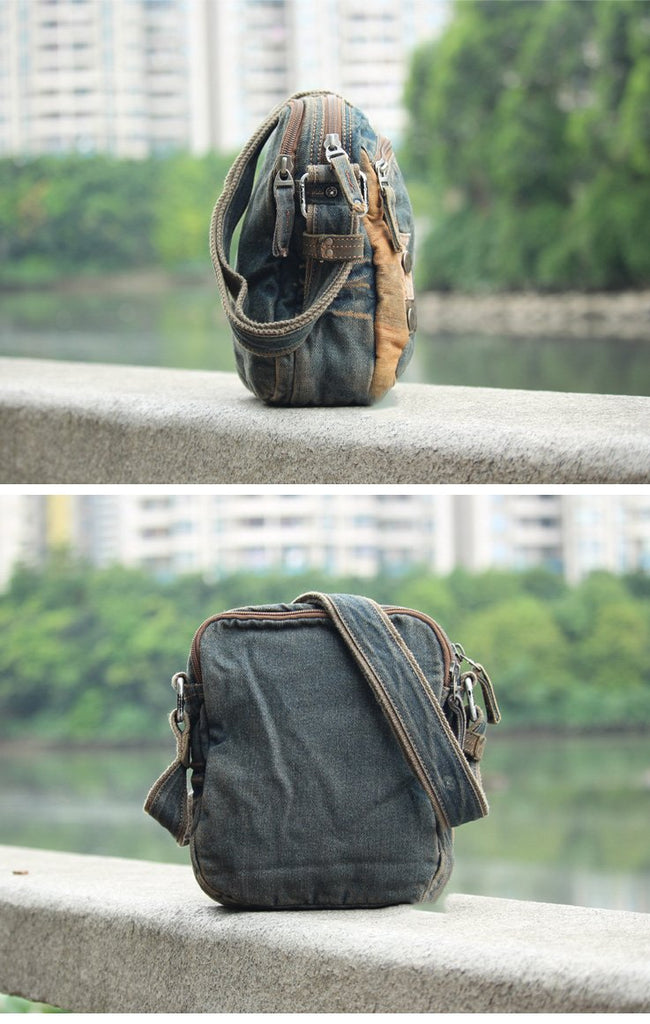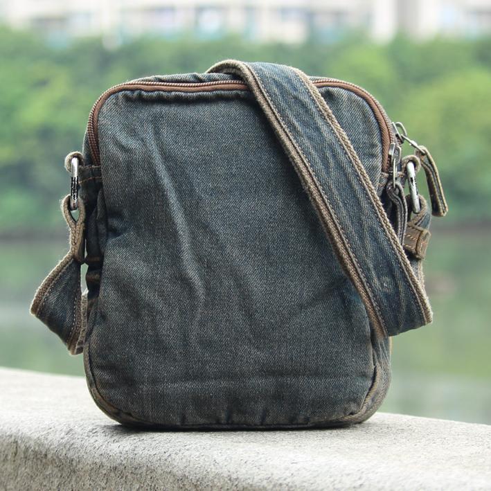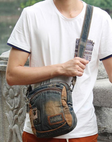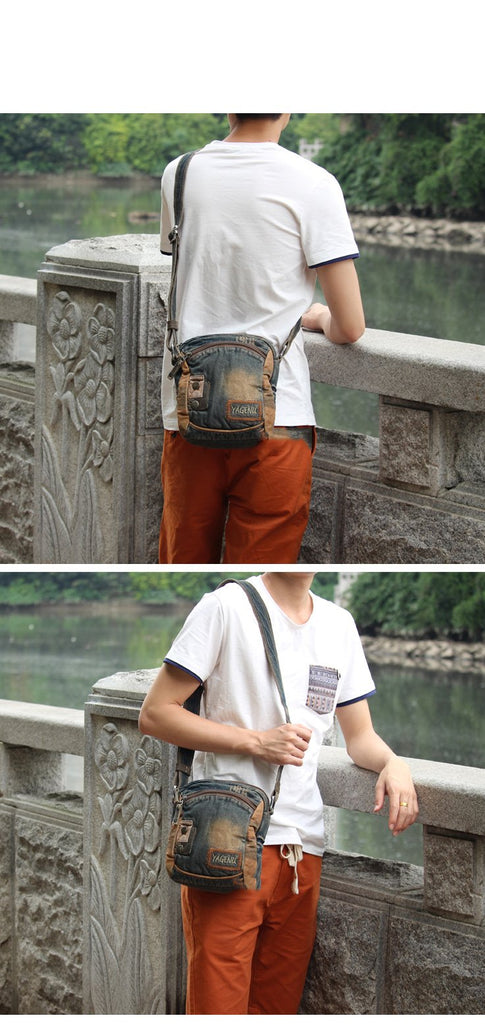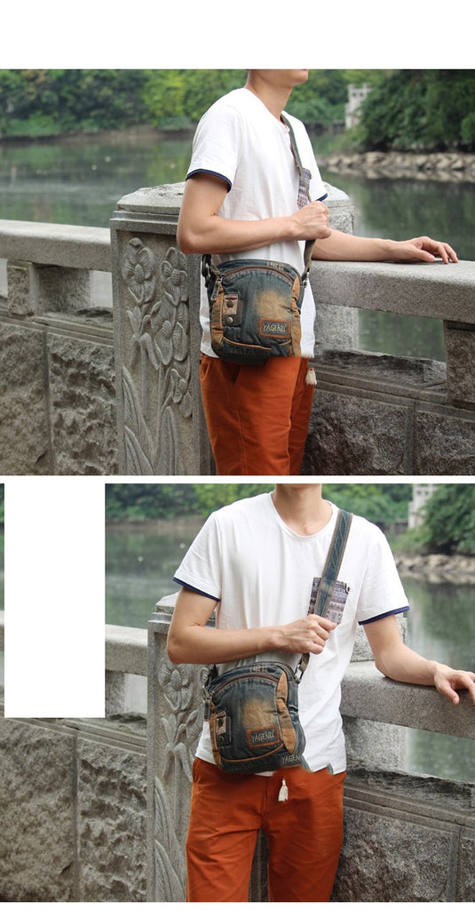 Style: Denim Blue Mens Casual 8 inches Vertical Messenger Bag Jean Belt Bag Belt Pouch For Men