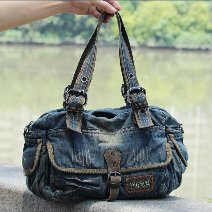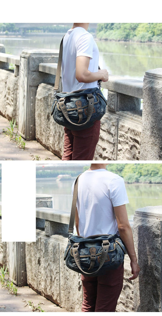 Denim Blue Mens Womens Large Shoulder Bag Handbag Blue Jean Messenger Bag For Men