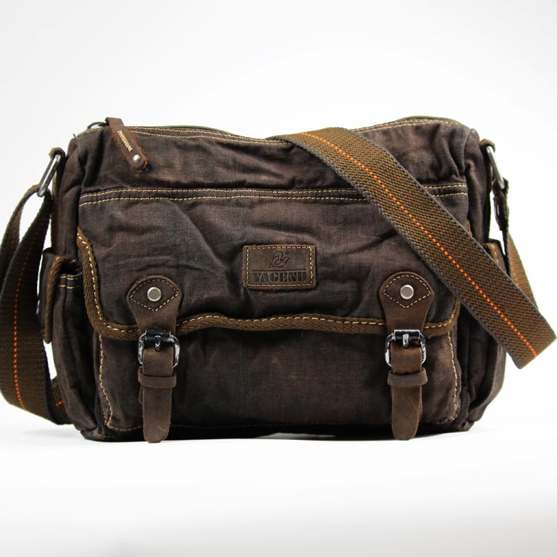 Design: Denim Brown Mens 10 inches Messenger Bag Dark Green Jean Postman Bag Courier Bag For Men