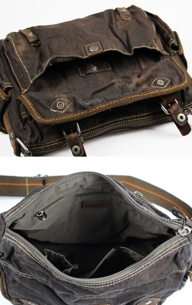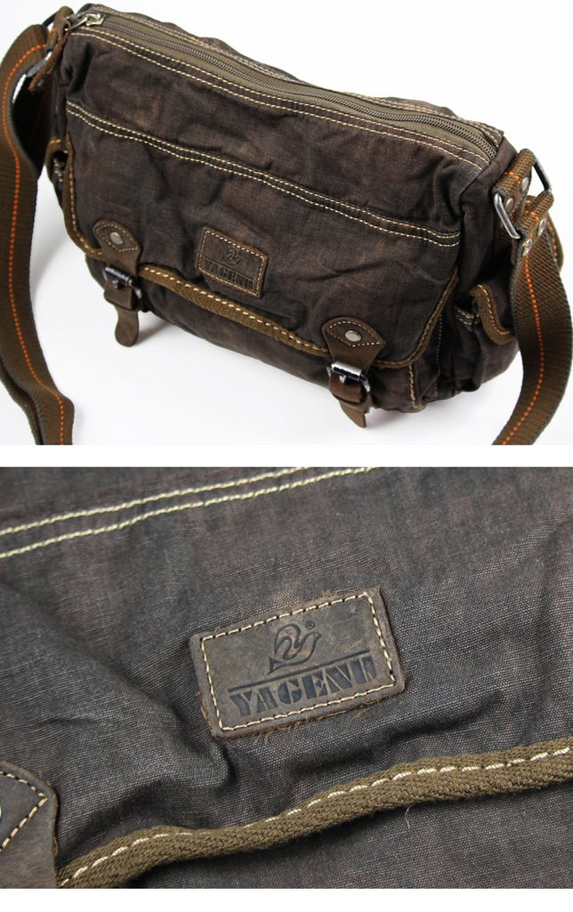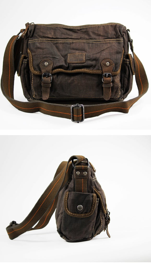 Style: Denim Brown Mens 10 inches Messenger Bag Dark Green Jean Postman Bag Courier Bag For Men