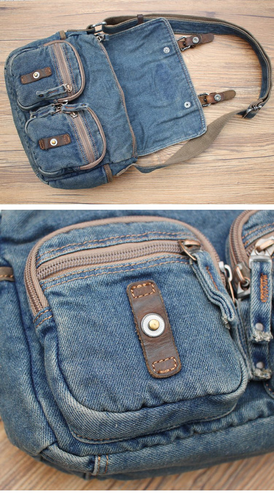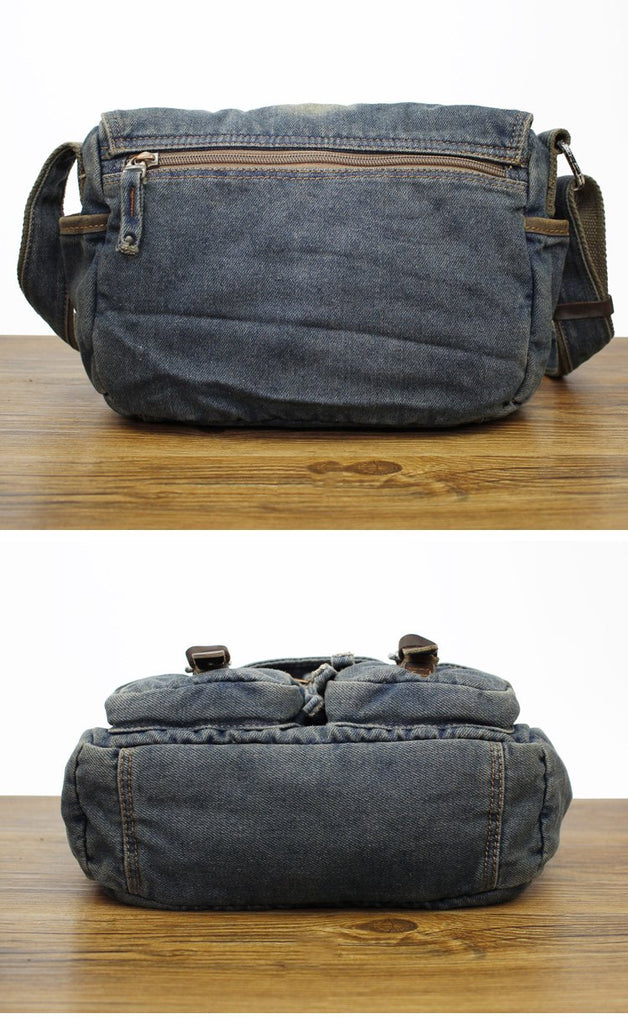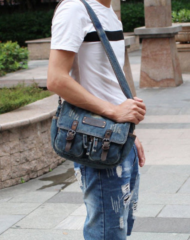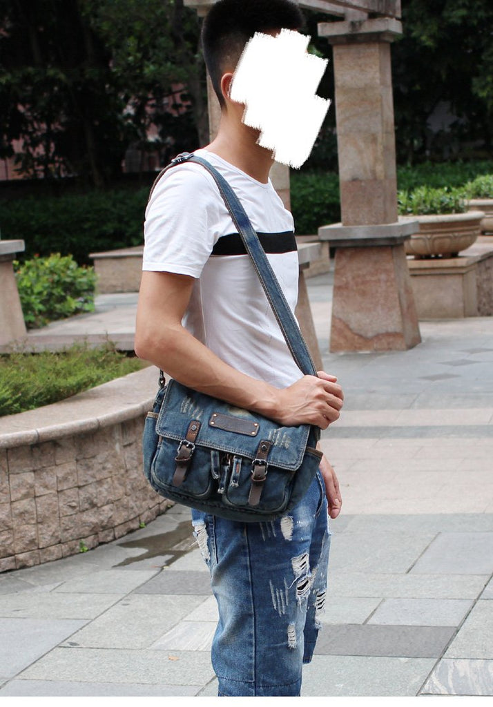 Style: Denim Blue Mens Small Courier Bag Messenger Bag Blue Jean Postman Bag For Men
