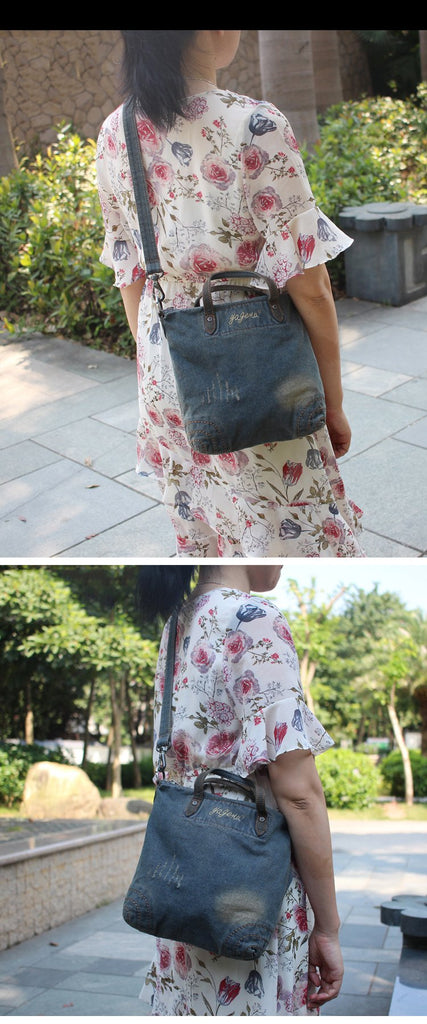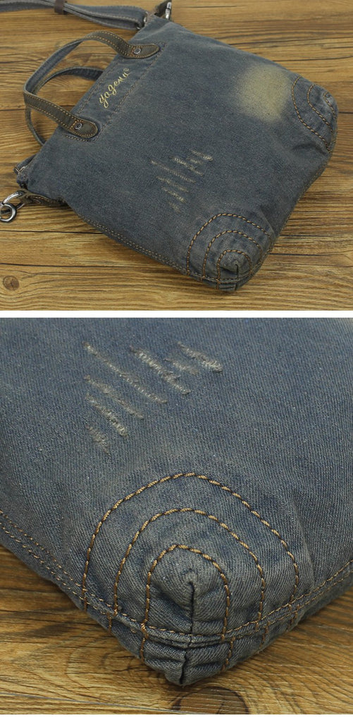 Style: Denim Blue Mens Messenger Bag Tote Shoulder Bag Jean Courier Bag For Men