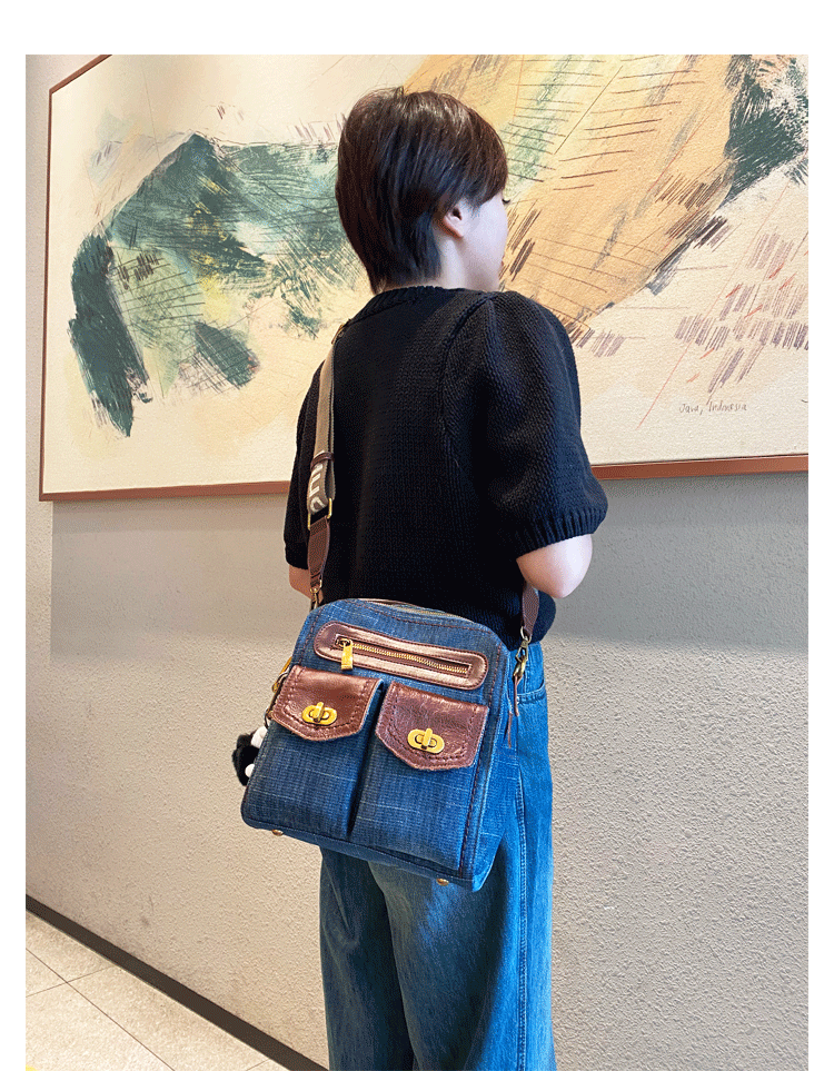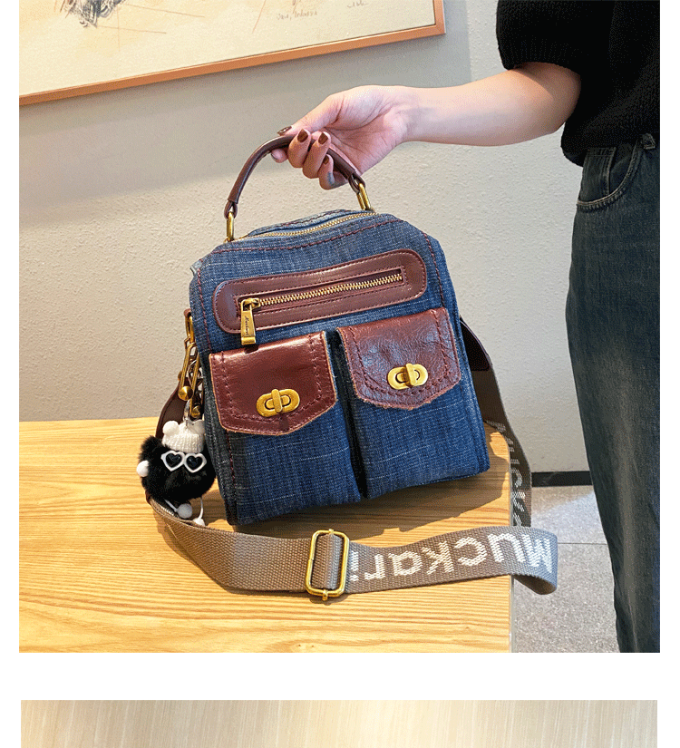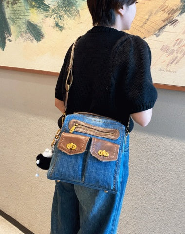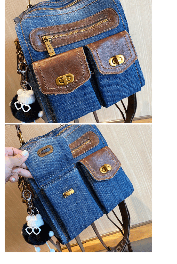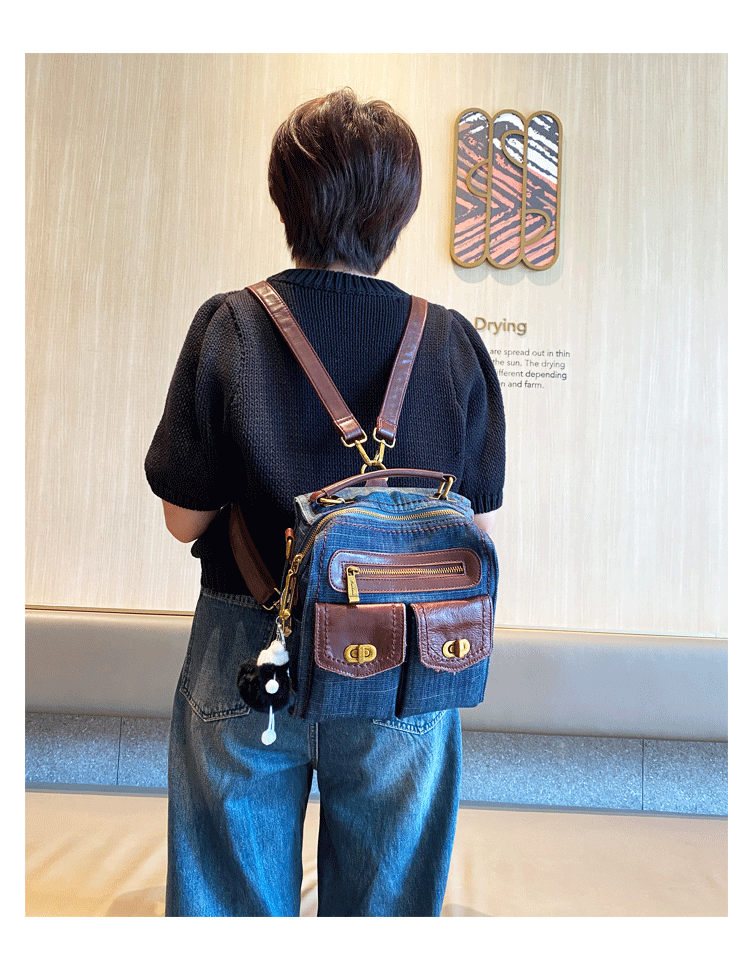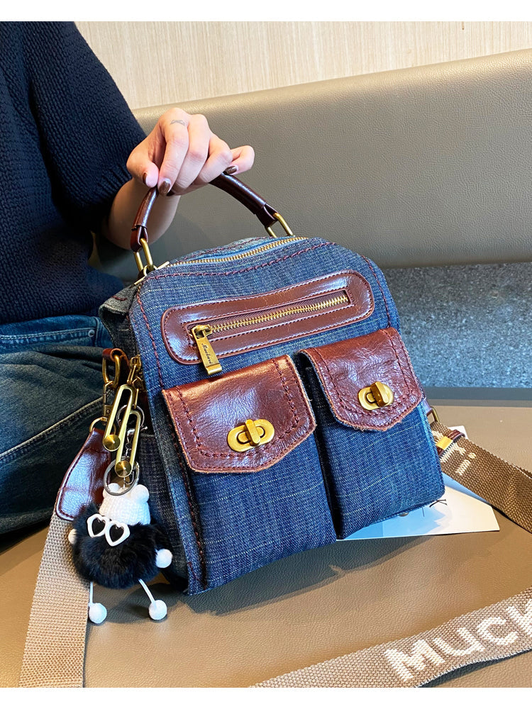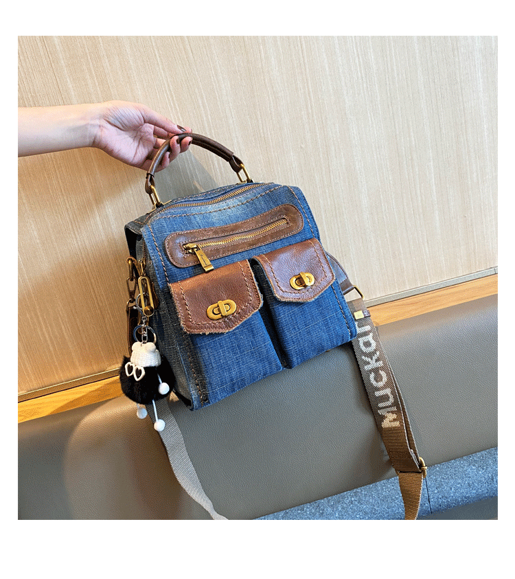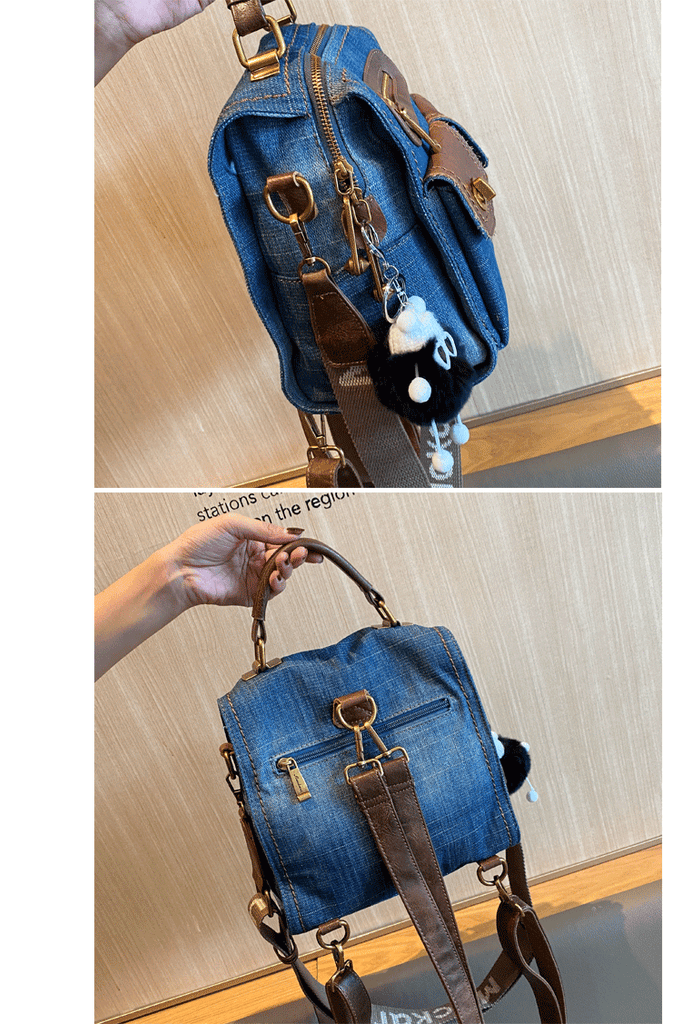 Design: Convertible Denim Mini Backpack Bag Crossbody Bag Blue Convertible Denim Handbag Shoulder Bag