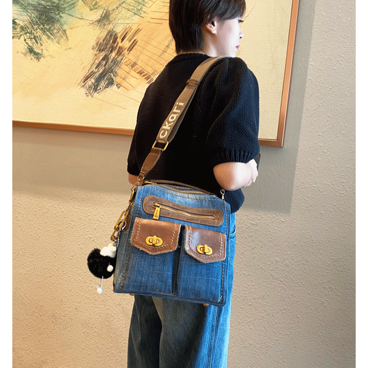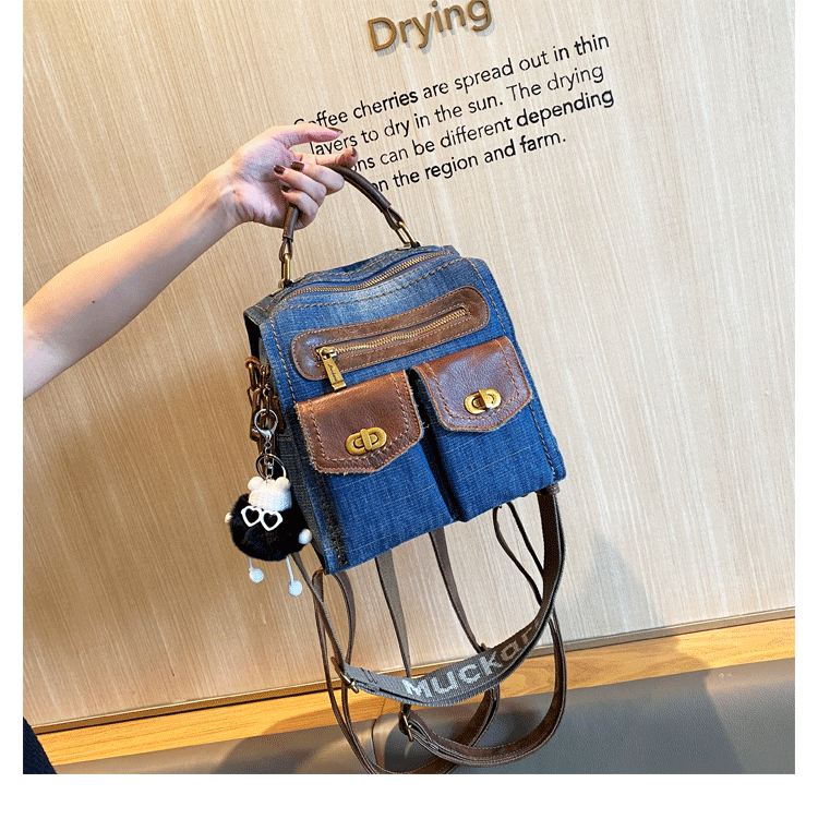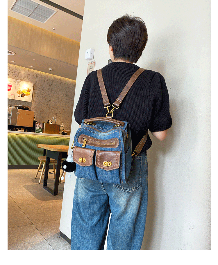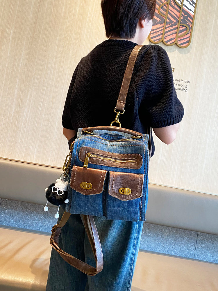 Style: Convertible Denim Mini Backpack Bag Crossbody Bag Blue Convertible Denim Handbag Shoulder Bag