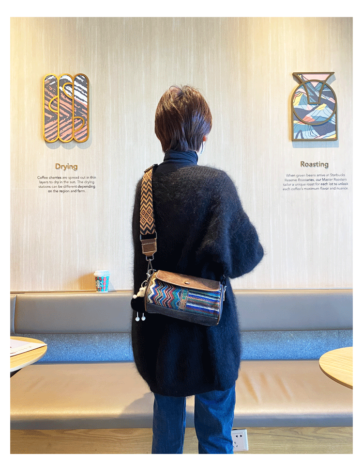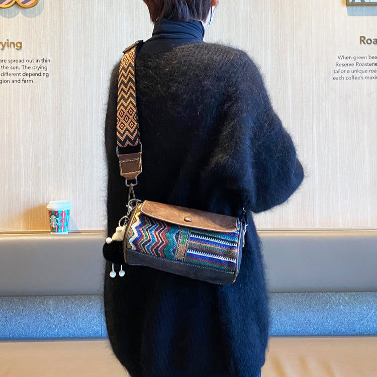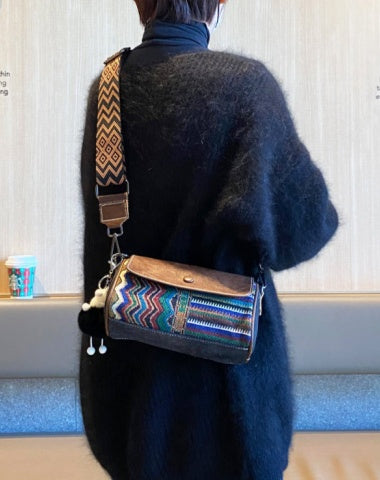 Design: Canvas Small Crossbody Bag Bohemian Style Black Gray Canvas Shoulder Bag Embroidery Canvas Bag