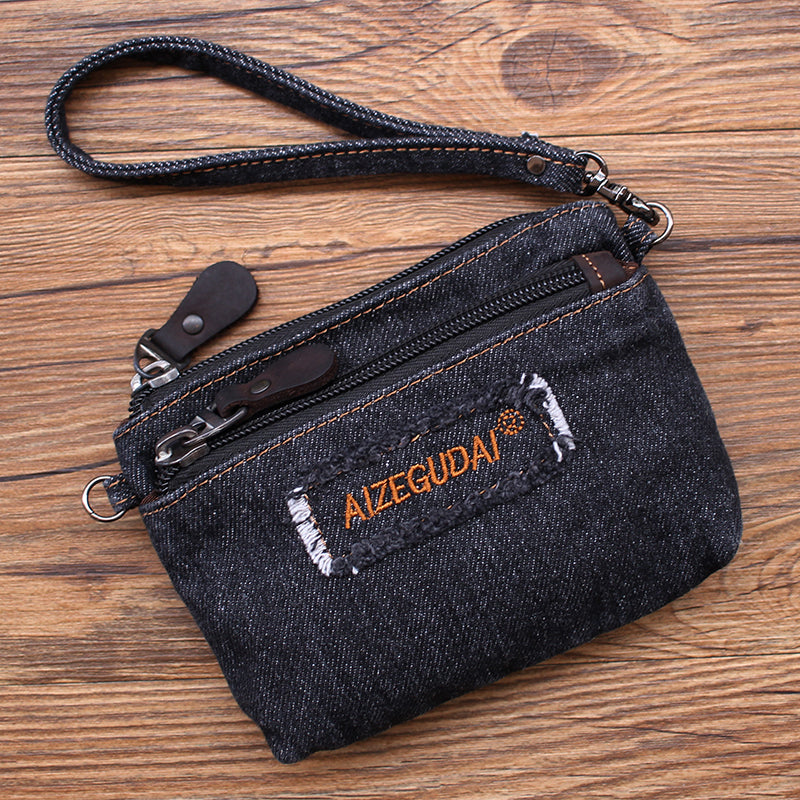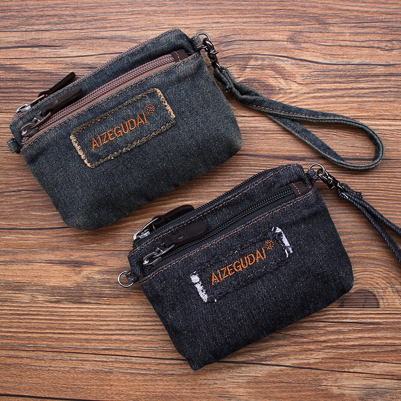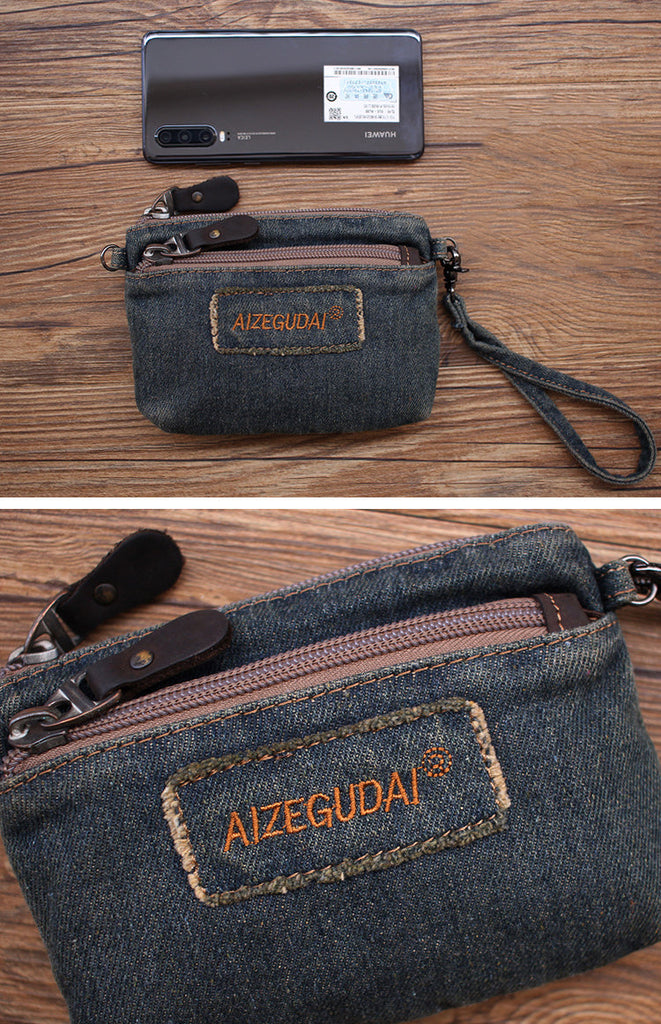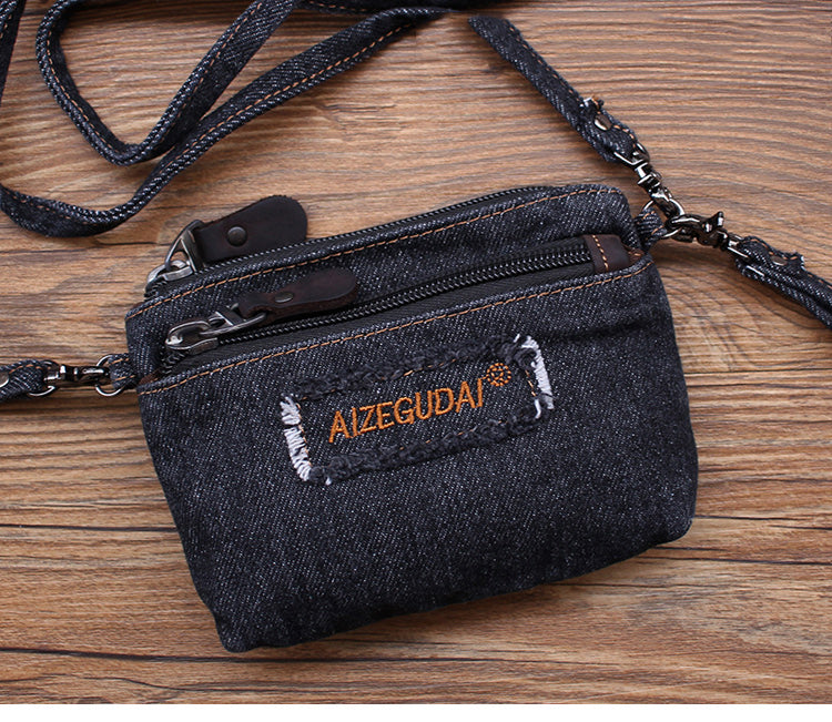 Style: Denim Womens Mini Shoulder Bags Keys Coin Wallet Crossbody Bag Denim Wirstlet Purse