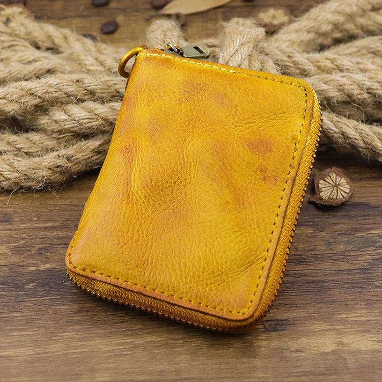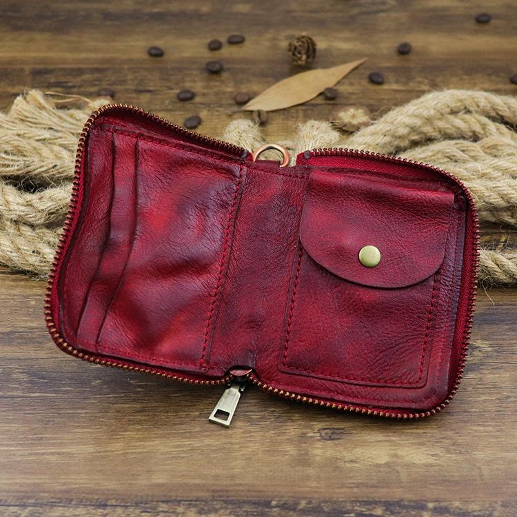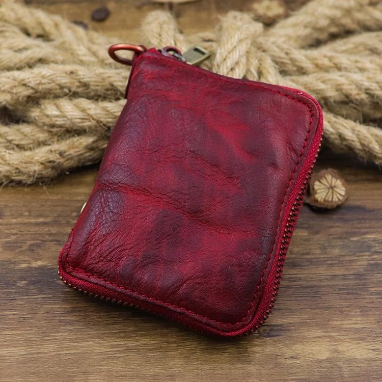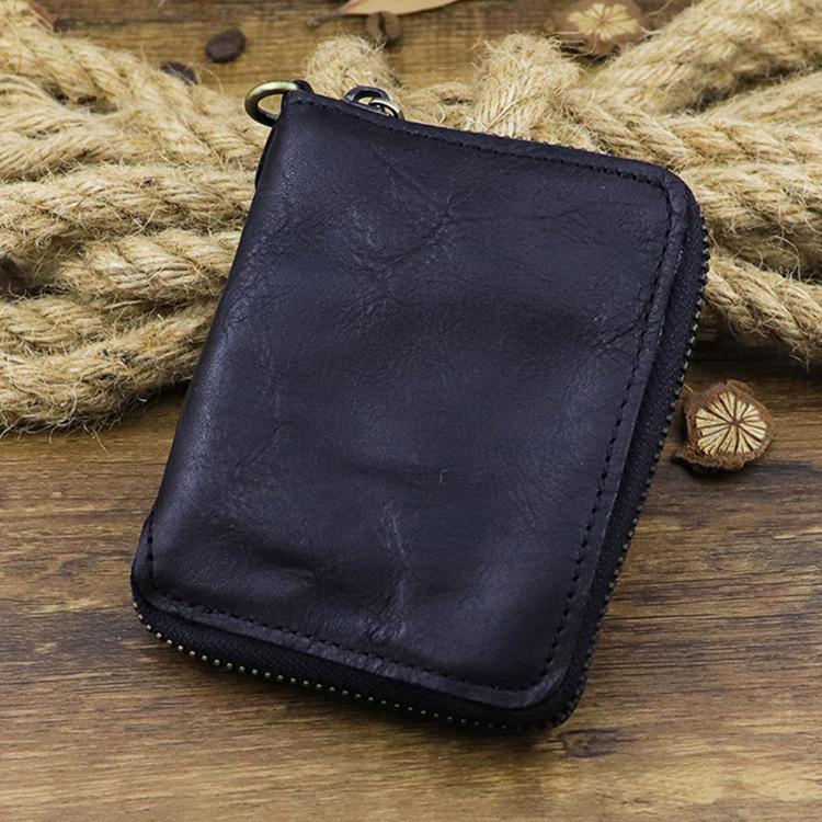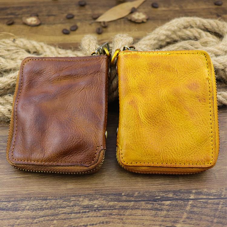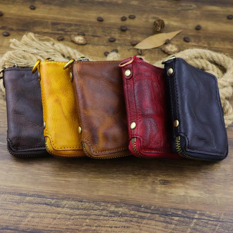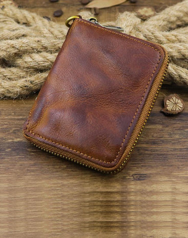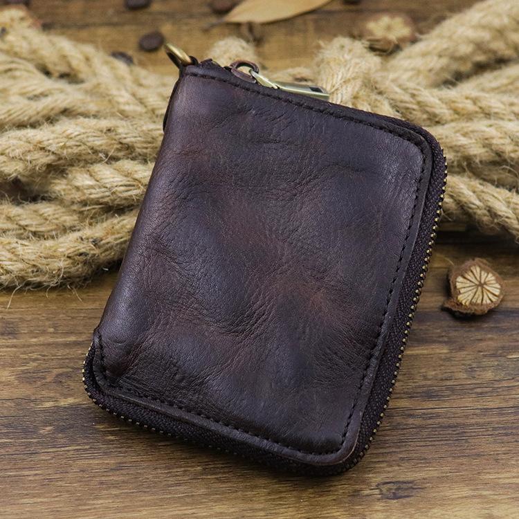 Design: Brown Men Leather Zip Billfold Small Chain Wallet with Coin Pocket Biker Bifold Chain Wallet for Men
