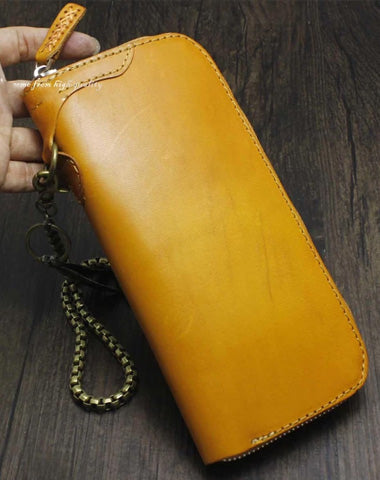 Design: Cool Brown Leather Men's Biker Wallet CHain Wallet Biker Chain Wallet Zipper Long Wallet with Chain For Men
