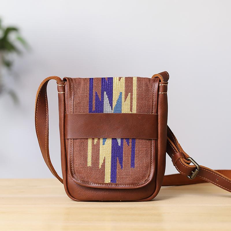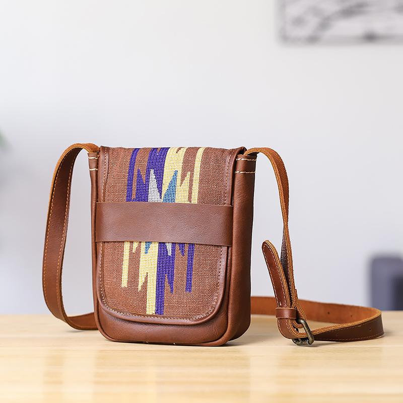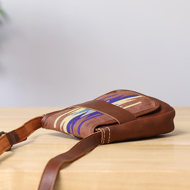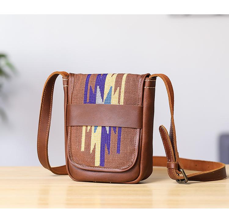 Style: Embroidered Leather Mens Womens Shoulder Bag Diagonal Bag Messenger Bag for Men