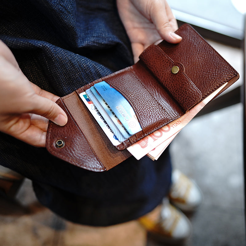 Design: Envelope Womens Coffee Leather Billfold Wallet Small Wallet with Coin Pocket Mini Envelope Wallet for Ladies