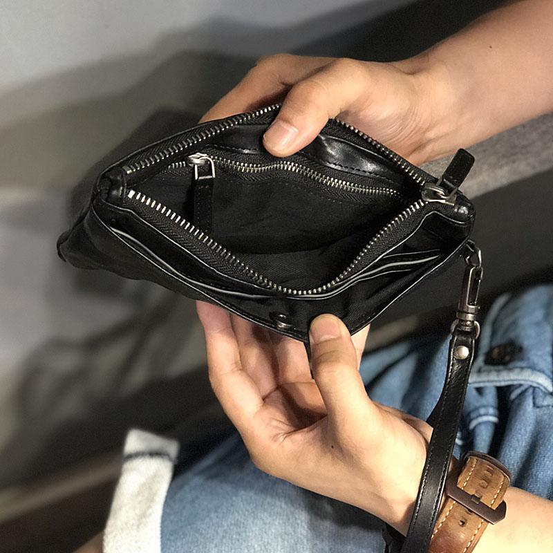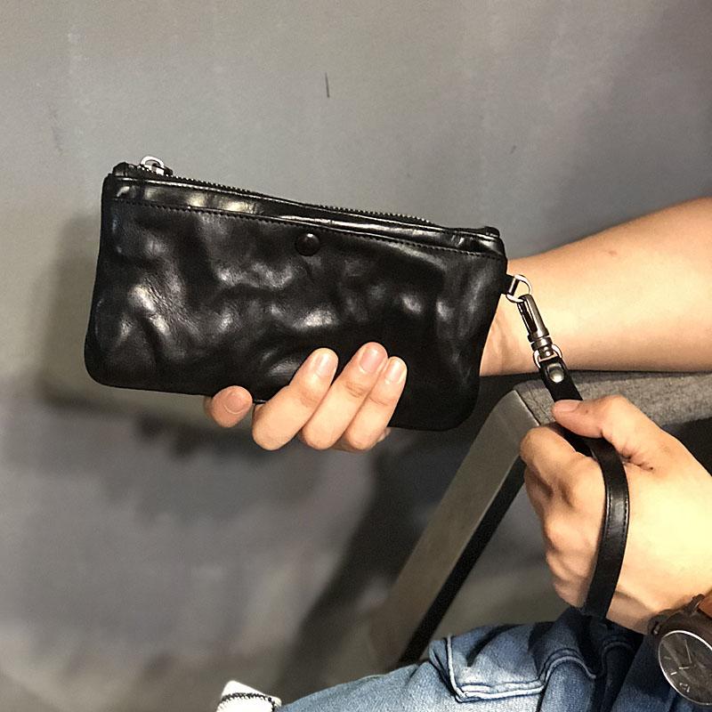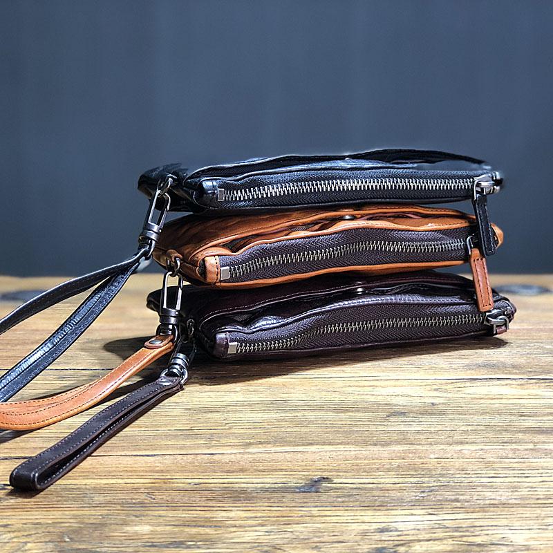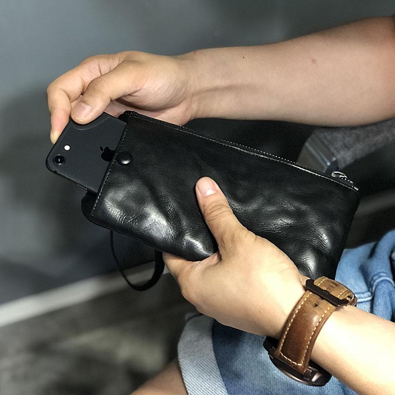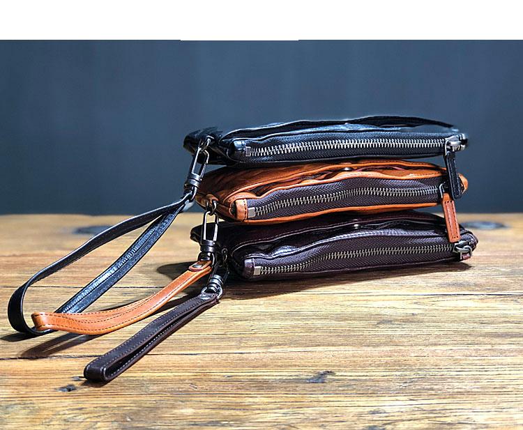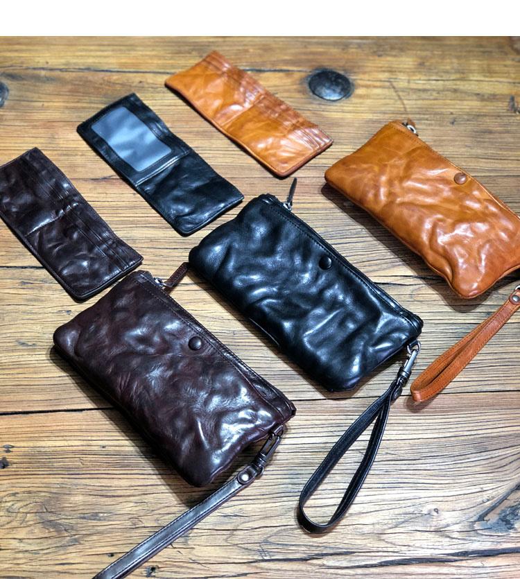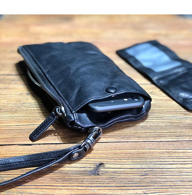 Design: Fashion Black Leather Mens Long Wallet Brown Wristlet Wallet Phone Wallet Clutch Men