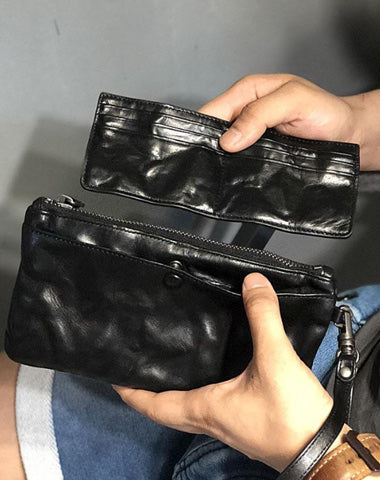 Style: Fashion Black Leather Mens Long Wallet Brown Wristlet Wallet Phone Wallet Clutch Men