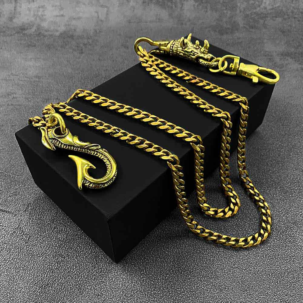 Style: Fashion Brass 19" Mens Rhinoceros Dragon Hook Key Chain Pants Chain Wallet Chain Motorcycle Wallet Chain for Men