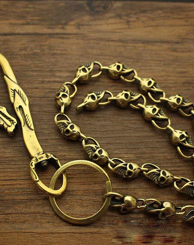 Style: Fashion Brass 19" Mens Skull Key Chain Pants Chain Wallet Chain Motorcycle Wallet Chain for Men