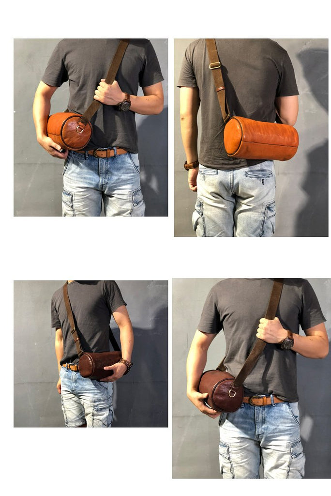 Design: FASHION BROWN LEATHER MEN and WOMENS Small Side Bags MESSENGER BAG BLACK Cylinder Bag Shoulder Bag FOR MENOverview: