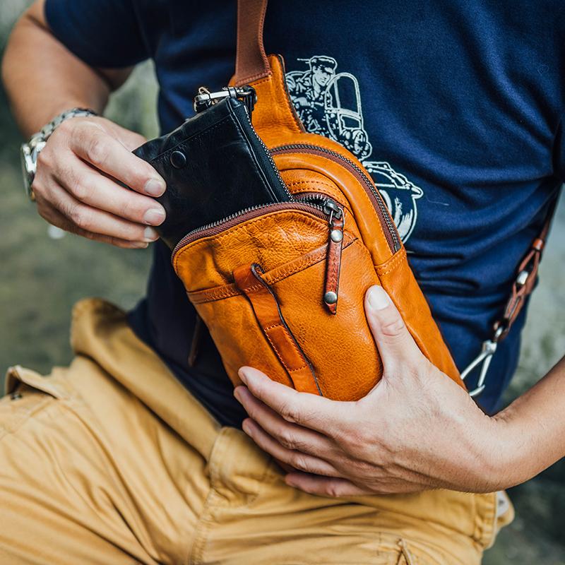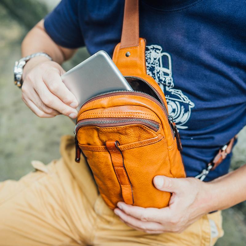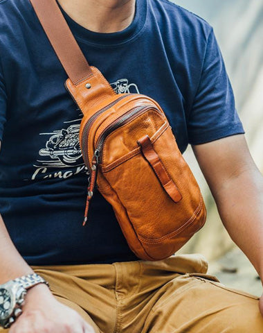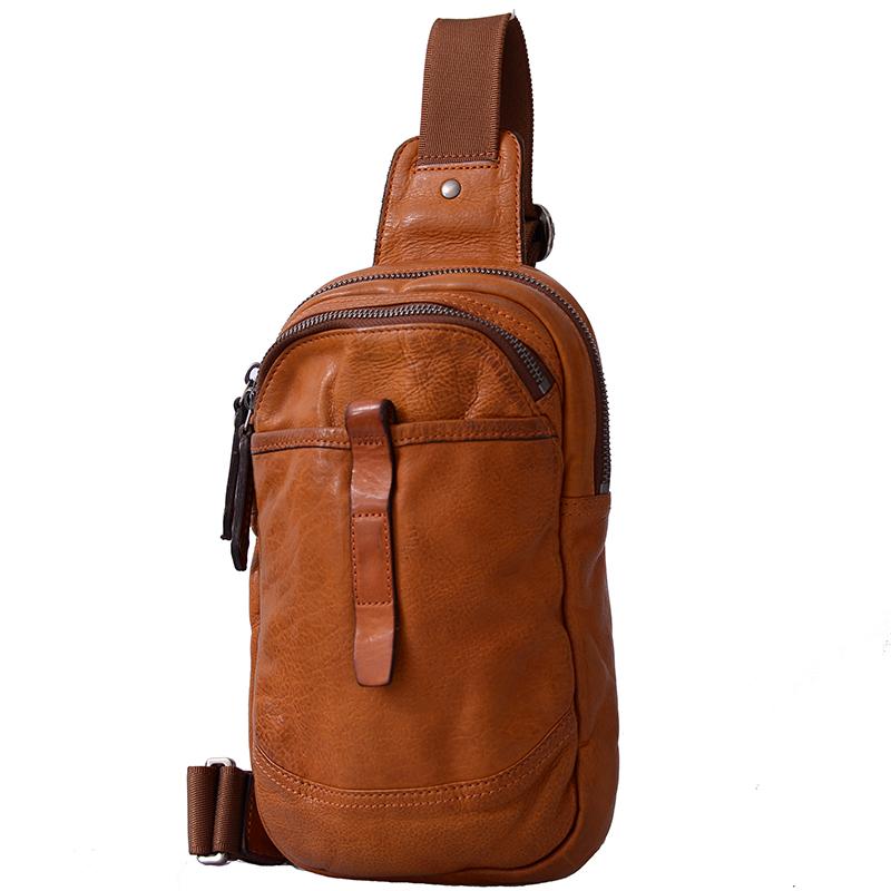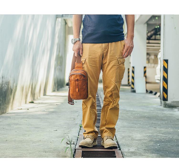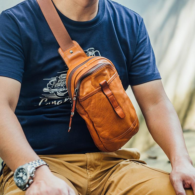 Style: Fashion Brown Leather Men Small Chest Bag Messenger Bag One Shoulder Backpack For Men
