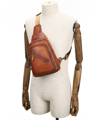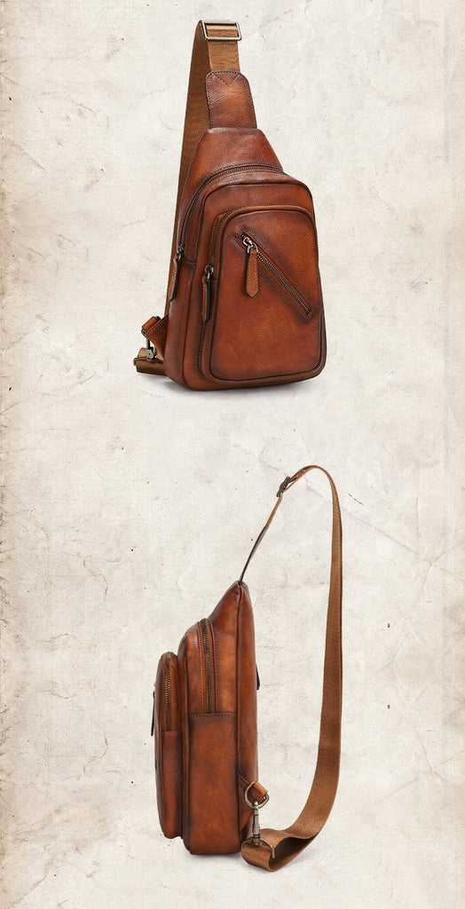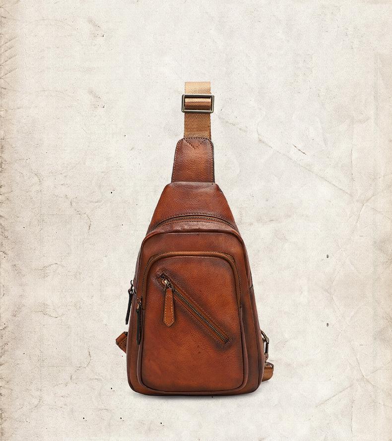 Design: Vintage Brown Leather Men's Sling Bags Chest Bag Brown Sling Pack Sling Backpack For Men