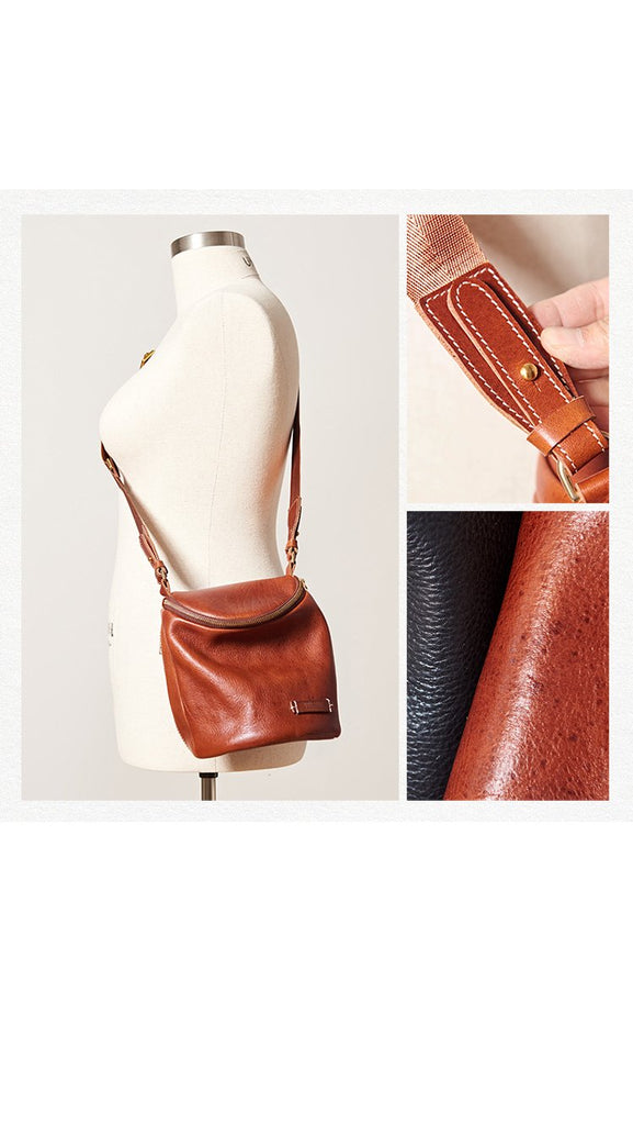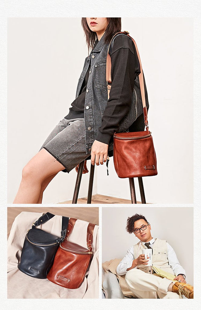 Style: Fashion Brown Leather Mens Shoulder Bag Bucket Bag Black Messenger Bag For Men and Women