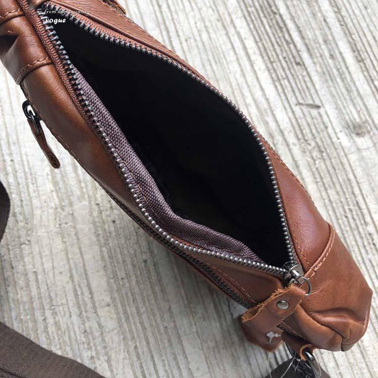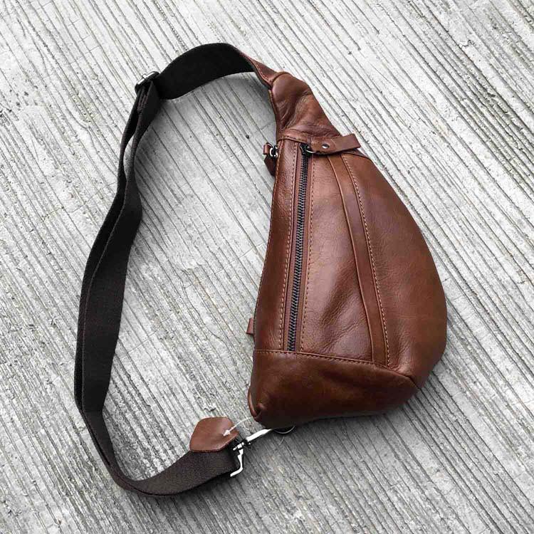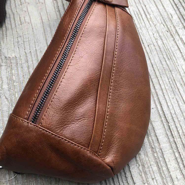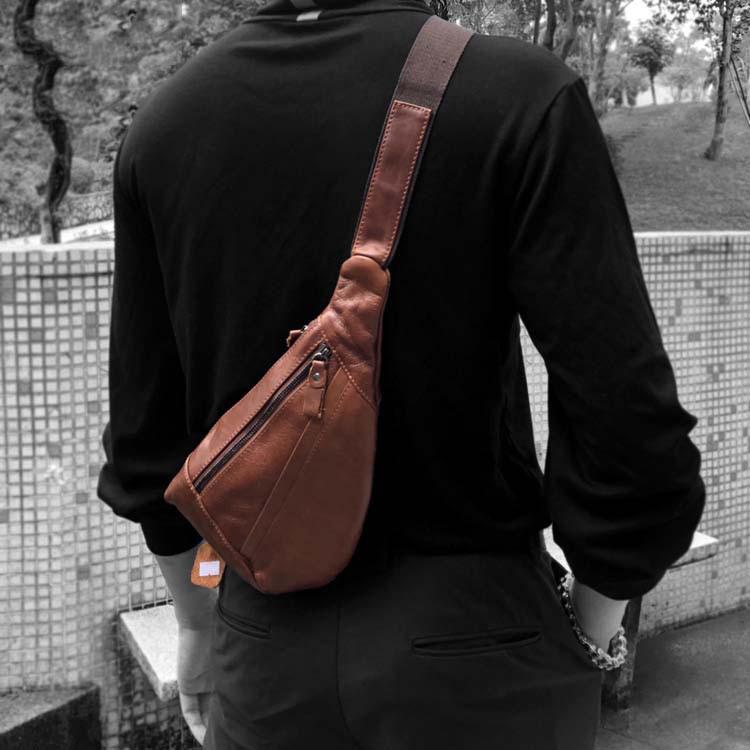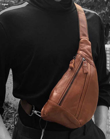 Style: Fashion Brown Leather Men's Sling Bags Chest Bag Brown One shoulder Backpack Sling Bag For Men