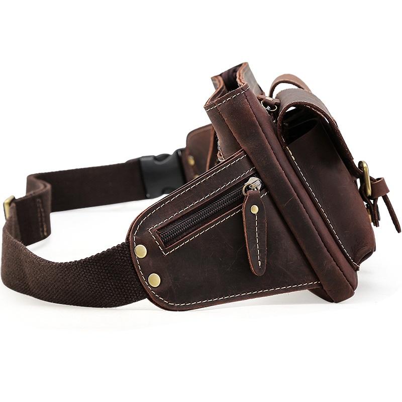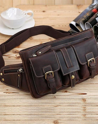 Design: Cool Leather Brown Men's Fanny Pack Chest Bag Vintage Waist Bag Hip Pack For Men