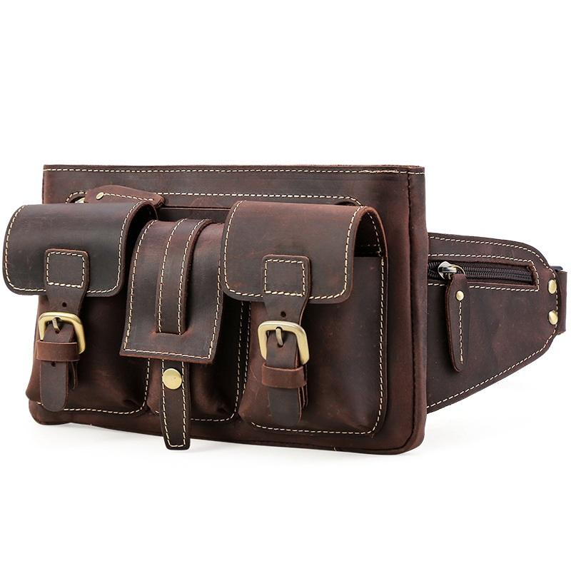 Style: Cool Leather Brown Men's Fanny Pack Chest Bag Vintage Waist Bag Hip Pack For Men