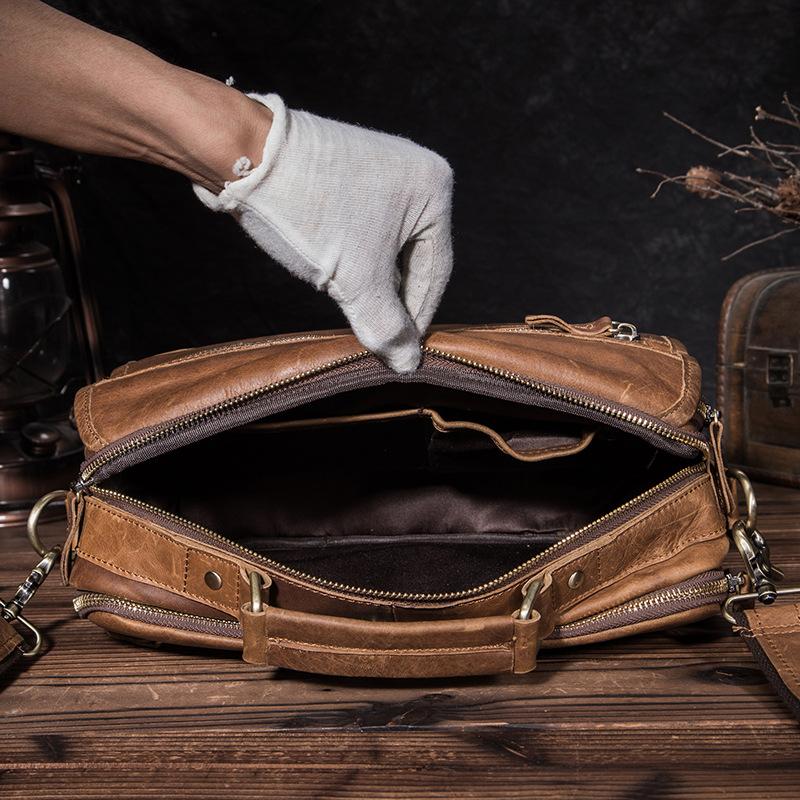 Design: Fashion Dark Brown Men's Brown Professional Briefcase 10‘’ Laptop Handbag Business Bag For MenOverview: