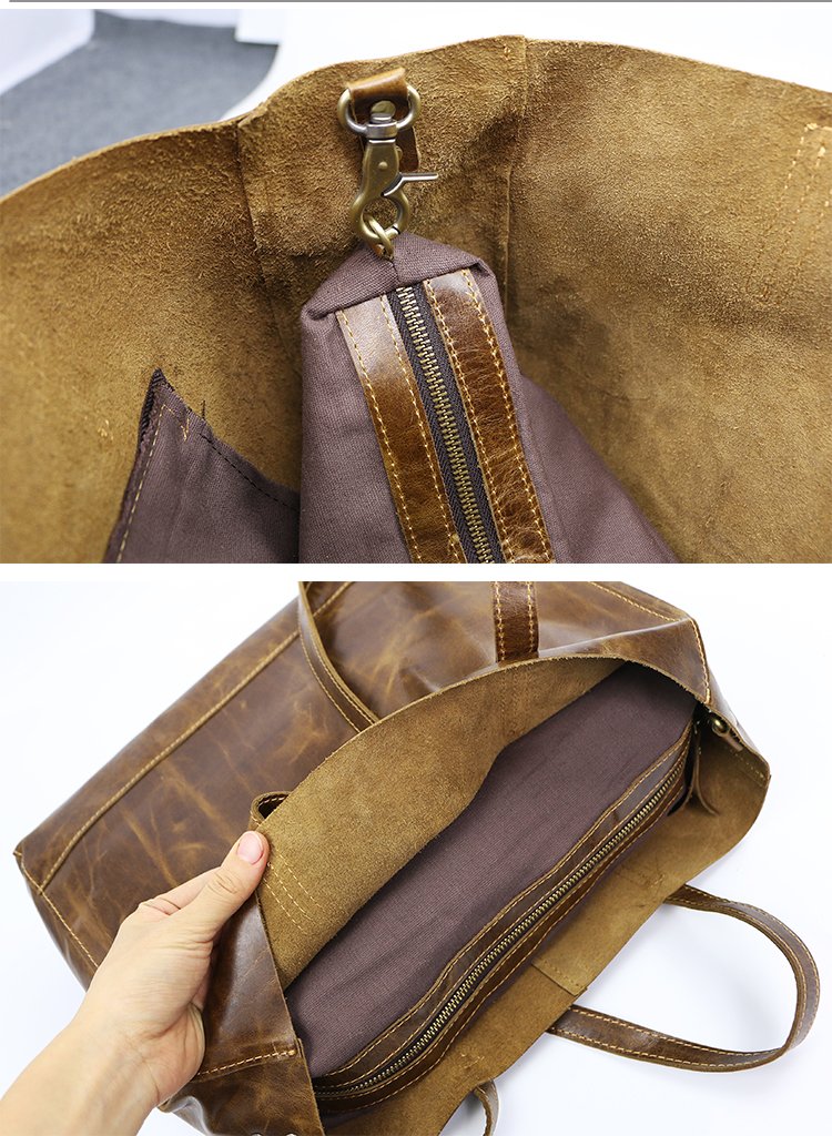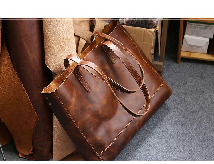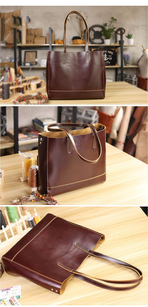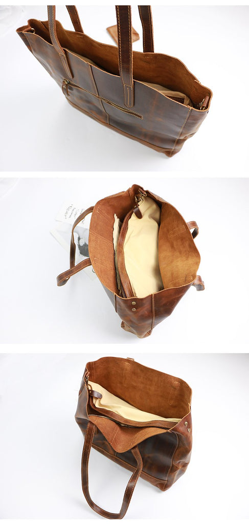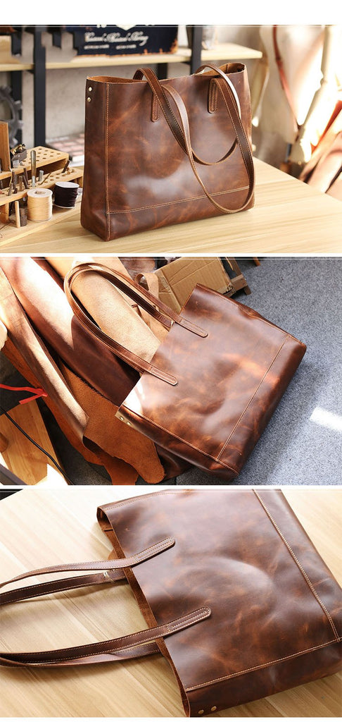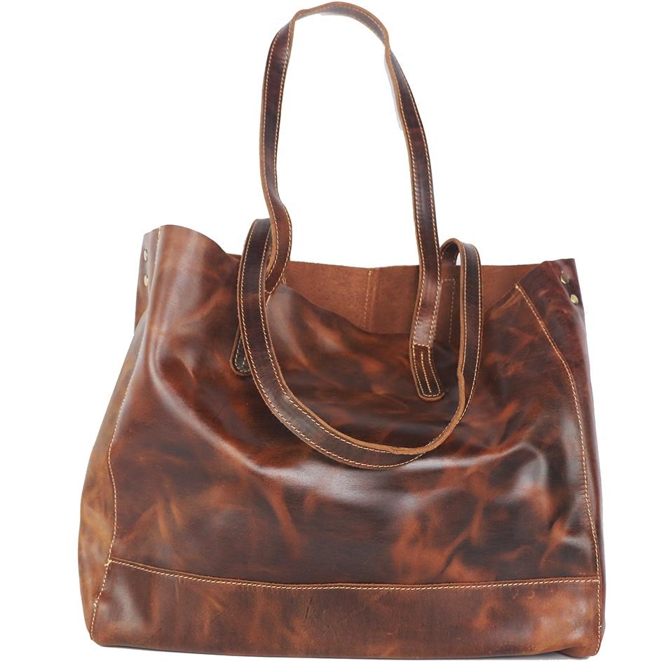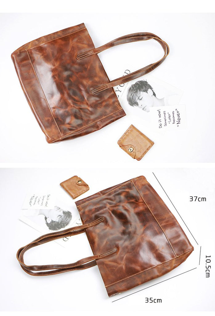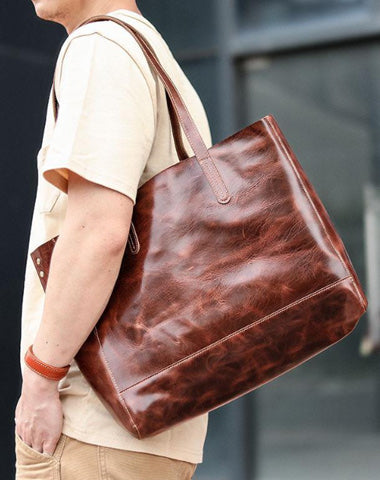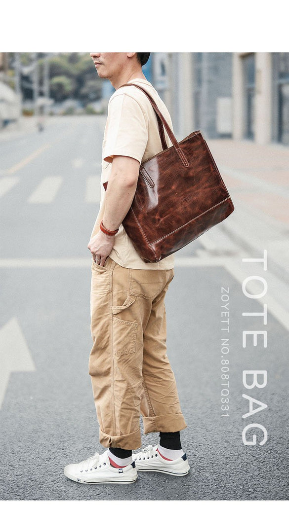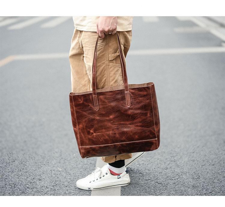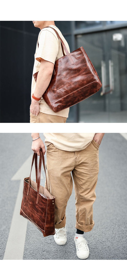 Design: Fashion Dark Red Leather Men Womens 15 inches Amber Brown Tote Bag Shoulder Tote Bag For Men