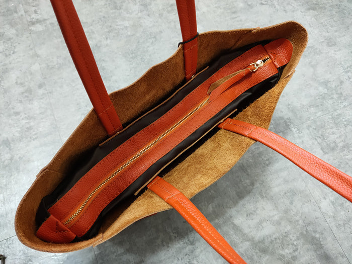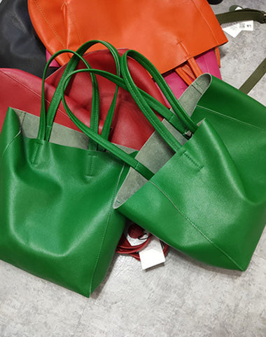 Style: Fashion Genuine Orange Leather Tote Bag Rose Red Tote Purse Green Shoulder Tote Bag Handbag Tote For Women