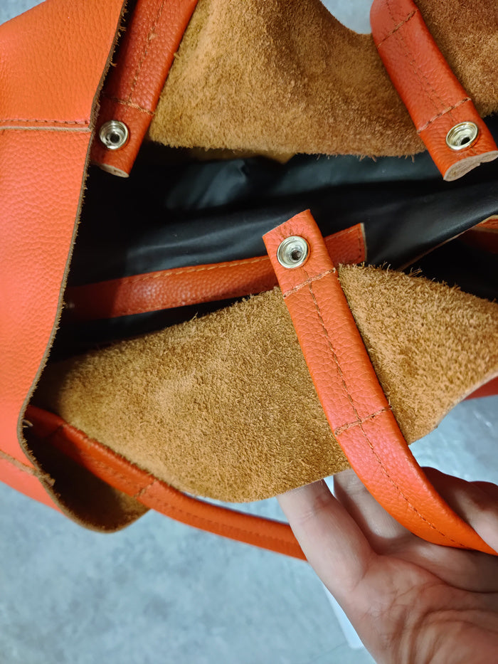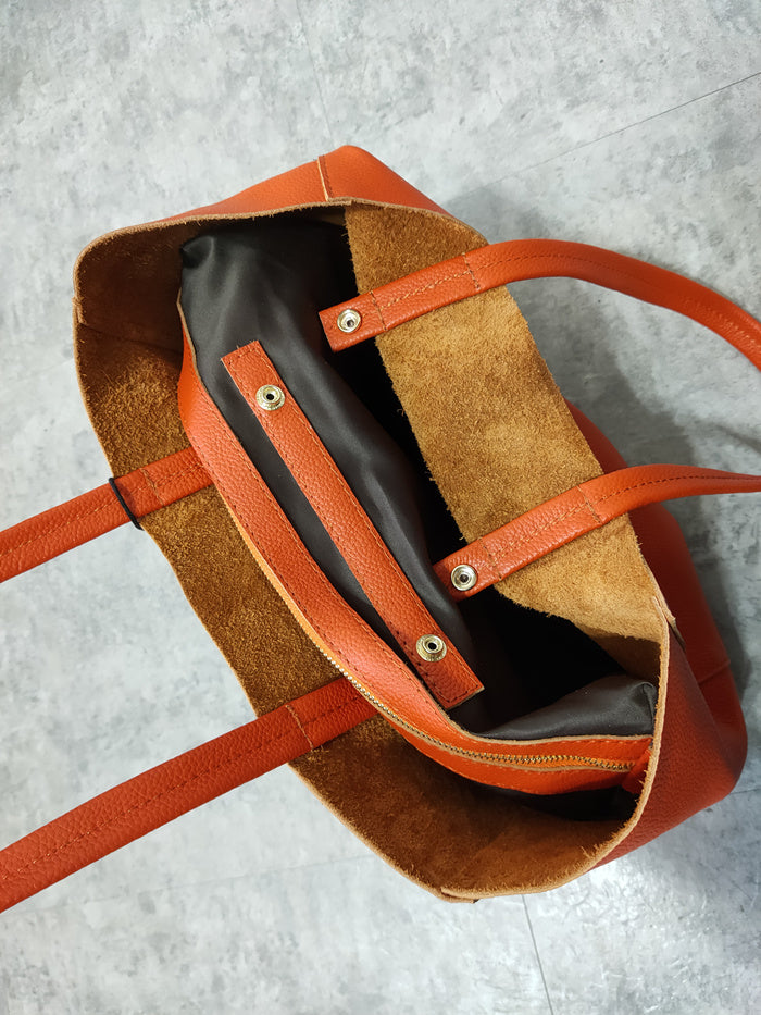 Design: Fashion Genuine Orange Leather Tote Bag Rose Red Tote Purse Green Shoulder Tote Bag Handbag Tote For Women