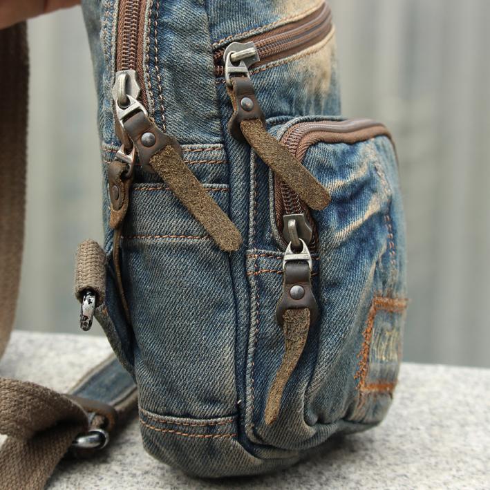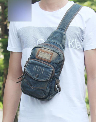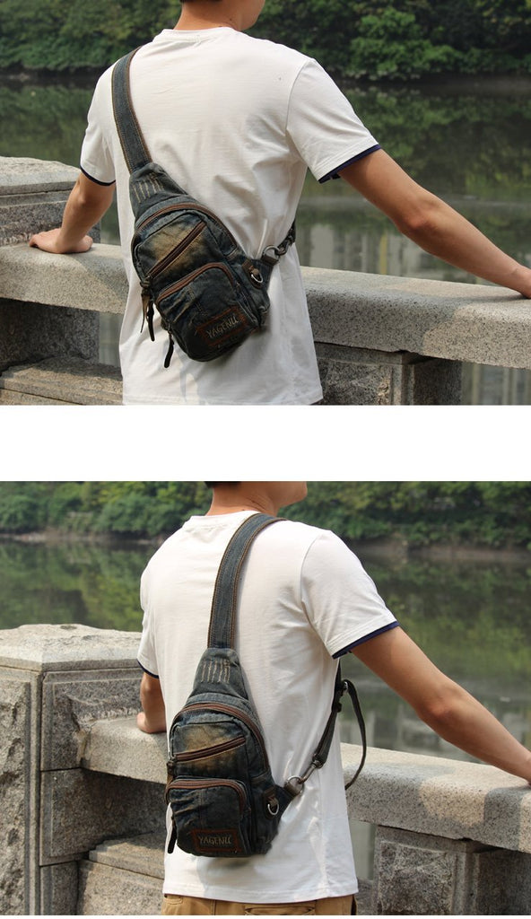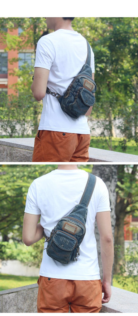 Style: Canvas Denim Blue Mens Sling Bag Chest Bags One Shoulder Backpack For Men