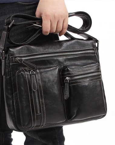 Design: Fashion Black Leather Men's Professional Briefcase Handbag Black Side Bag Shoulder Bag For Men