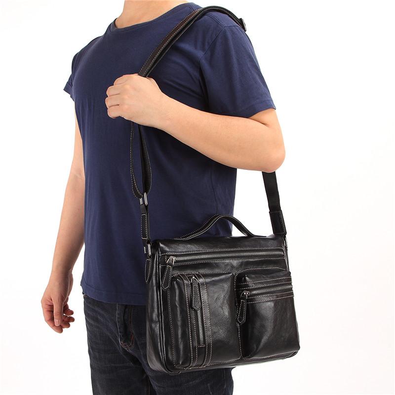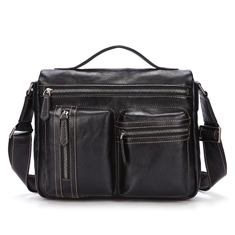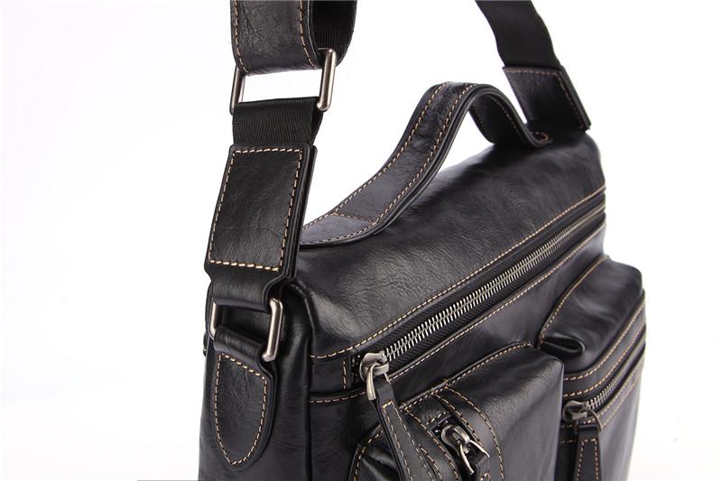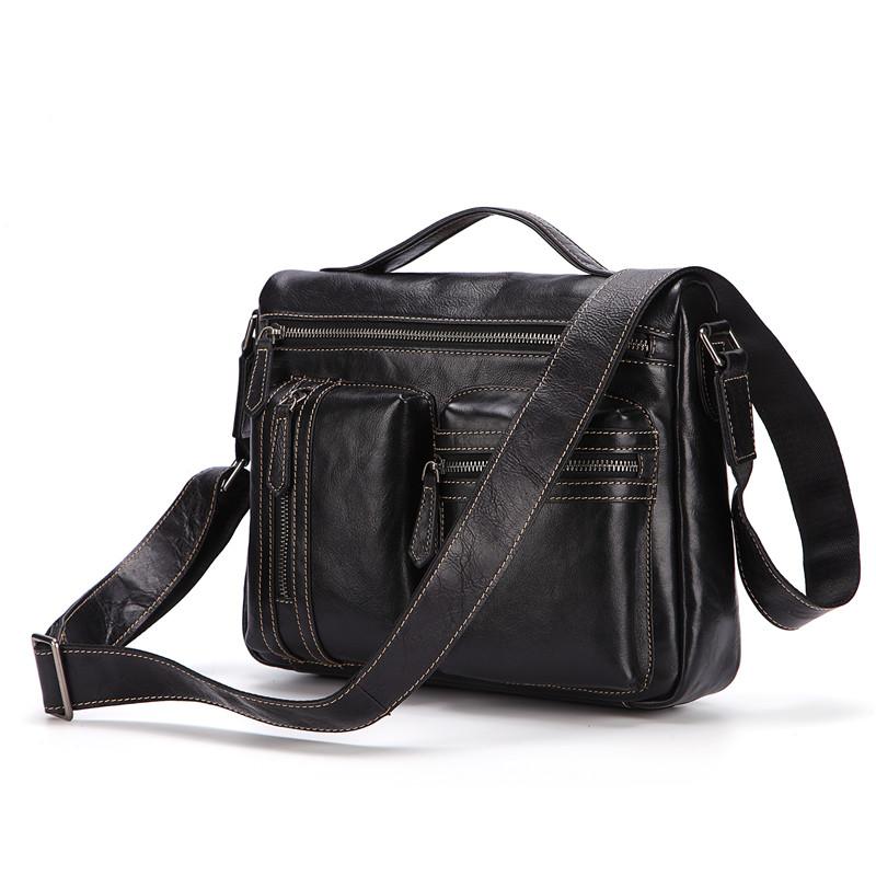 Design: Fashion Black Leather Men's Professional Briefcase Handbag Black Side Bag Shoulder Bag For MenOverview: