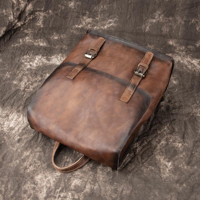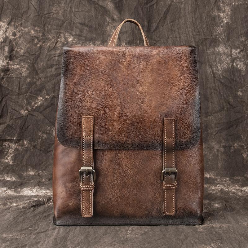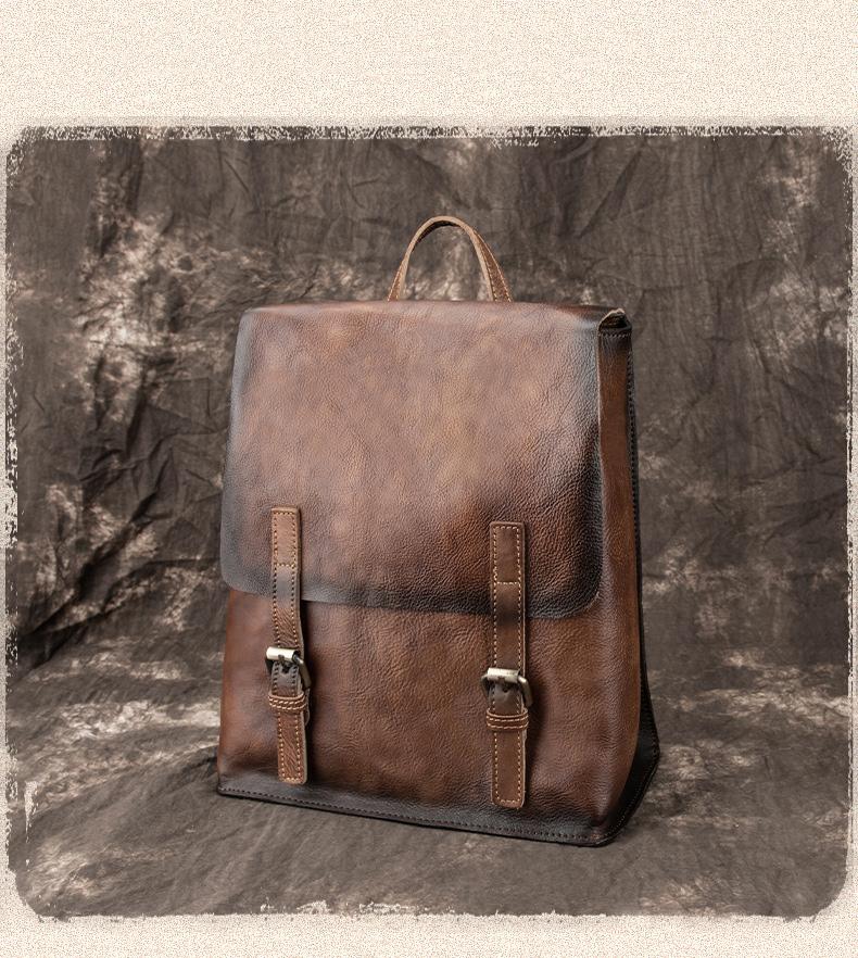 Design: Fashion LEATHER MEN'S Retro Yellow College Backpack Travel Backpack Handbag For MenOverview: