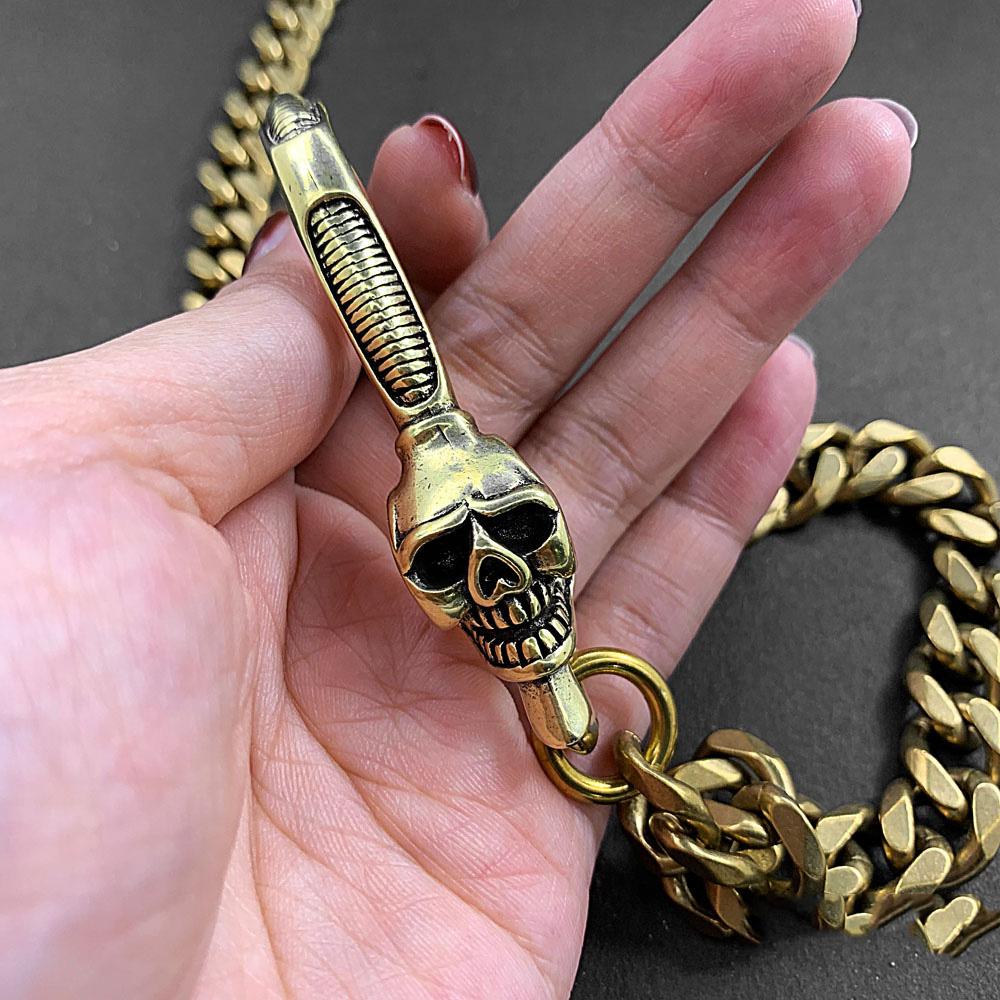 Style: Fashion Brass 19" Skull Mens Pants Chain Gold Wallet Chain Motorcycle Wallet Chain for Men