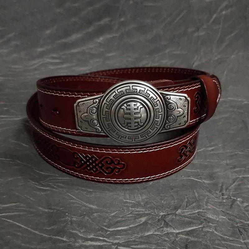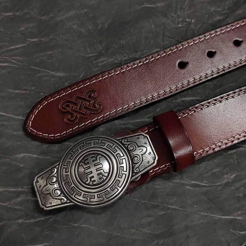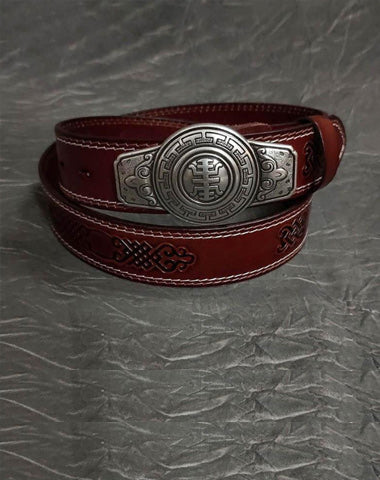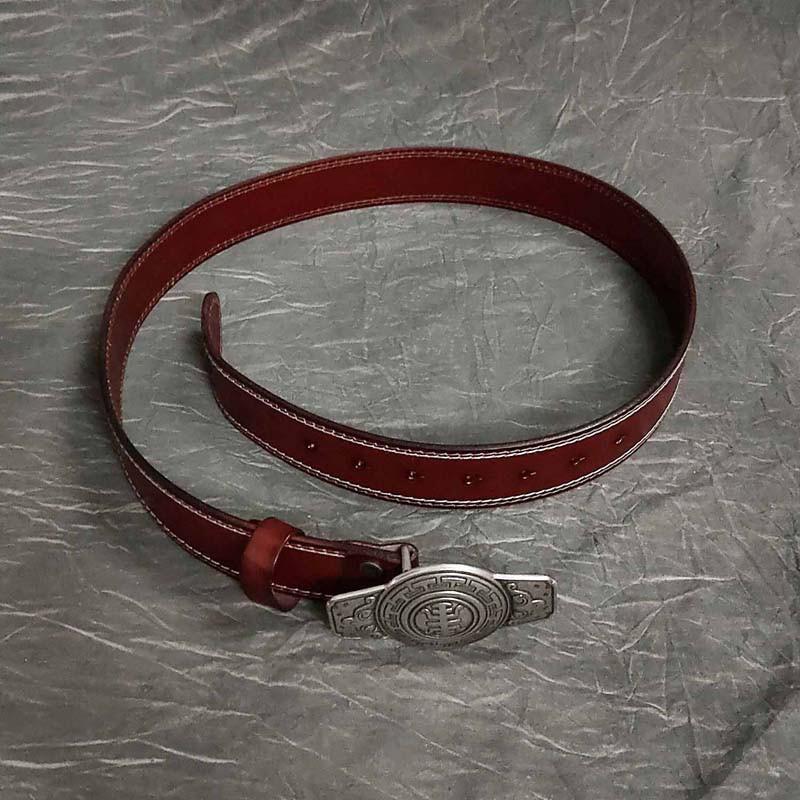 Design: Fashion Red Brown Leather Metal Belt Motorcycle Belt Leather Round Belt For Men