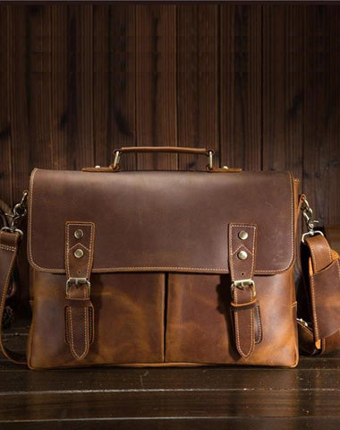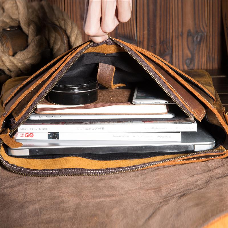 Design: Vintage Brown Leather Mens Briefcase 13inch Laptop Bag Business Bag Handbag For MenOverview: